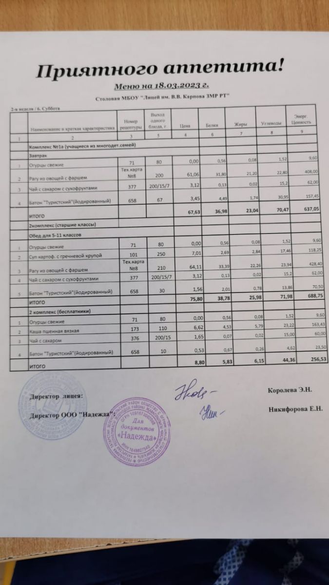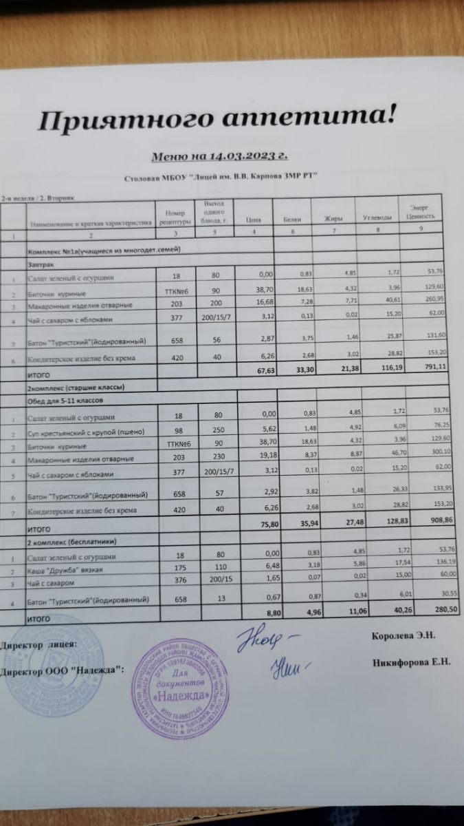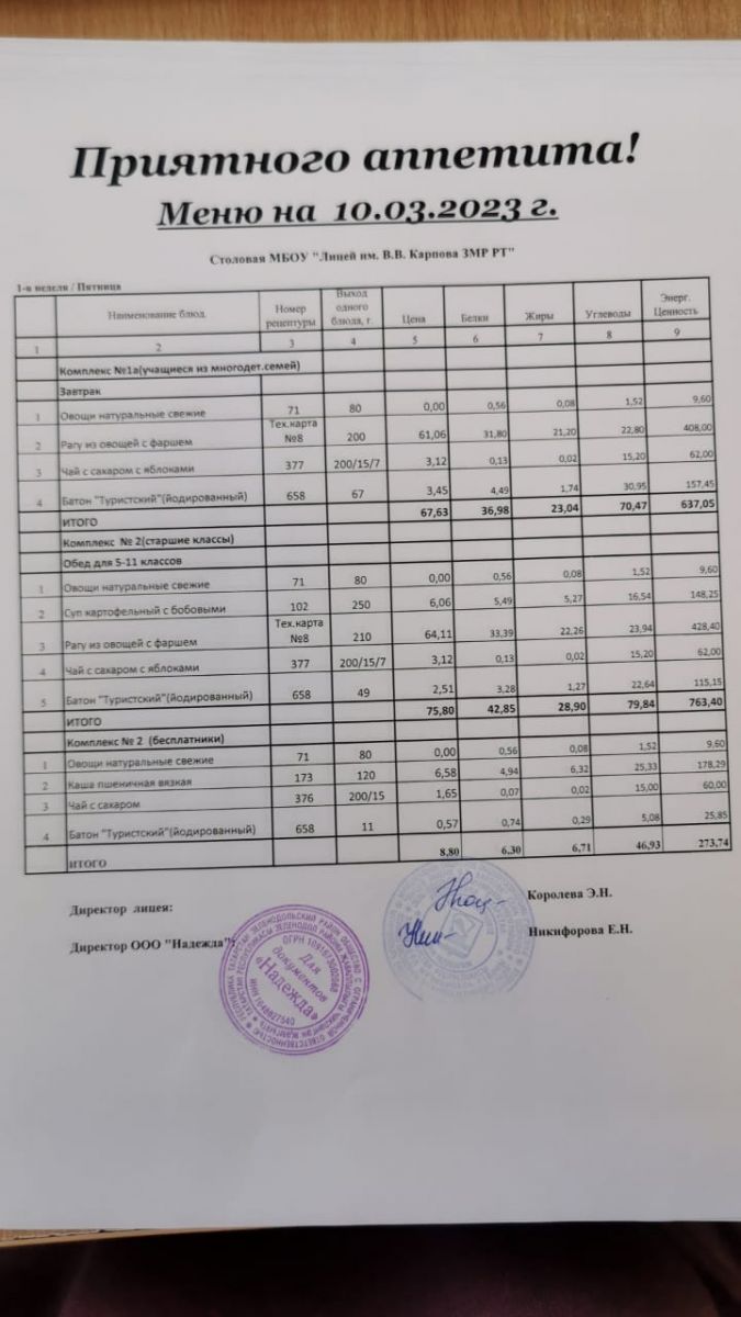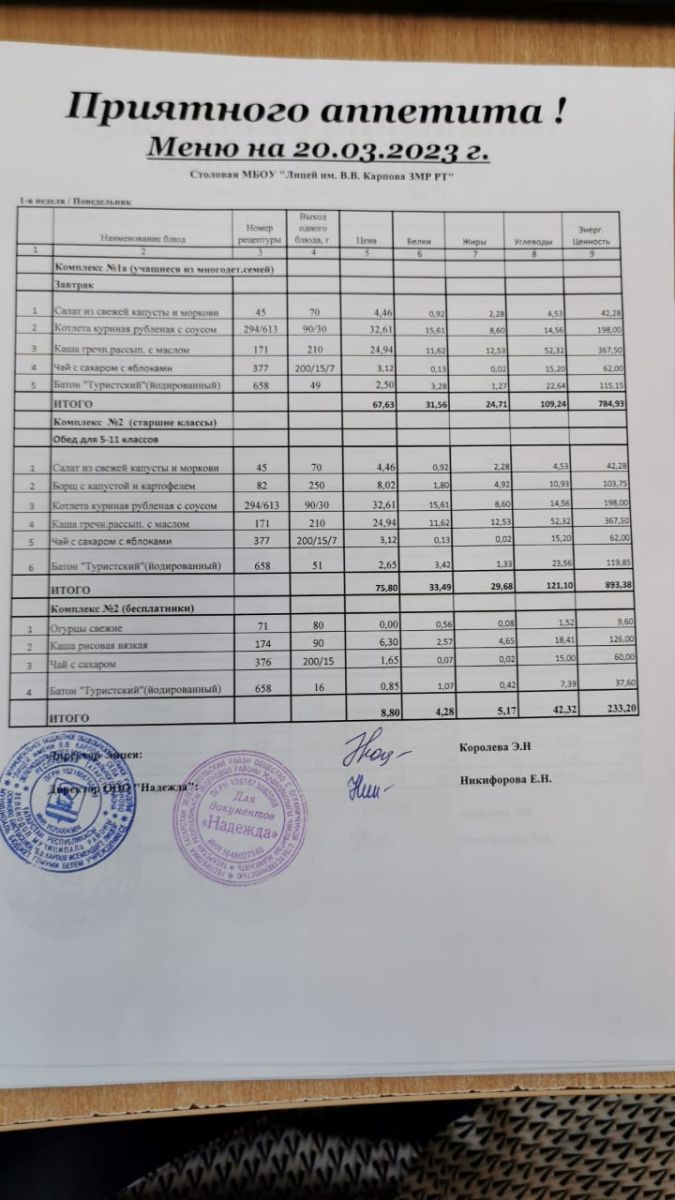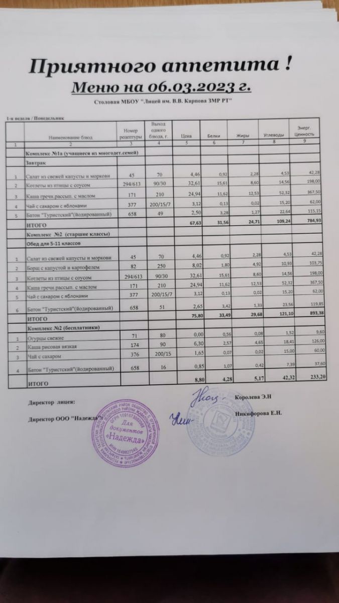 меню для учащихся 5-11 классов, многодетных, бесплатников март |