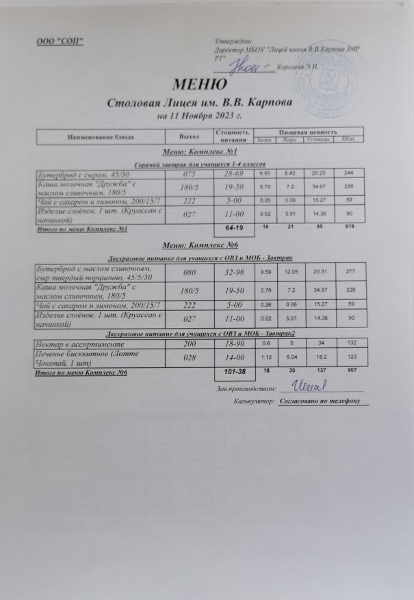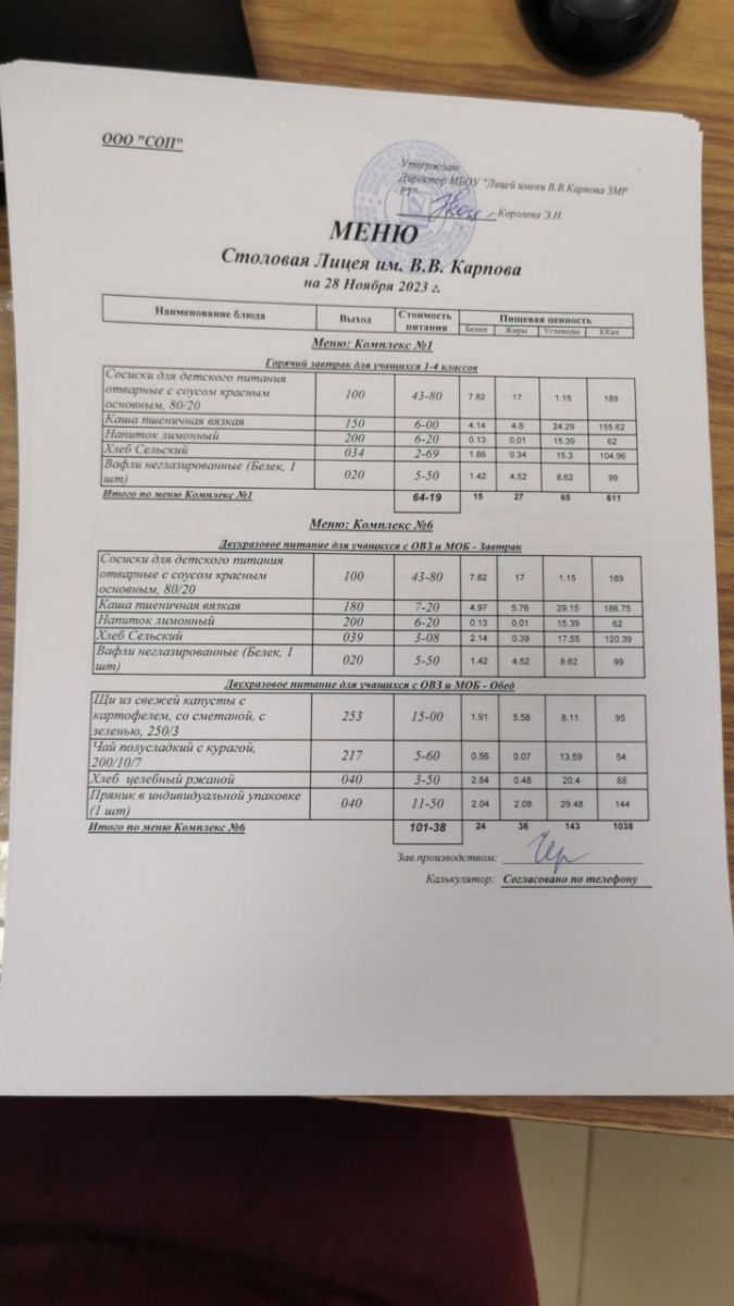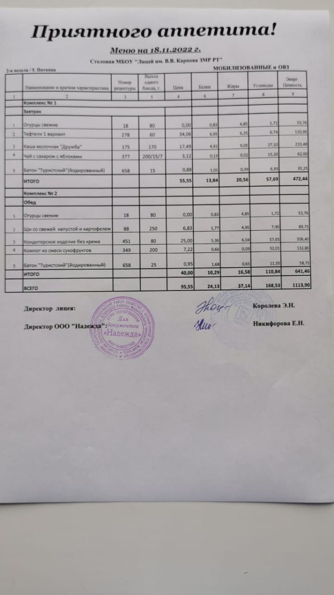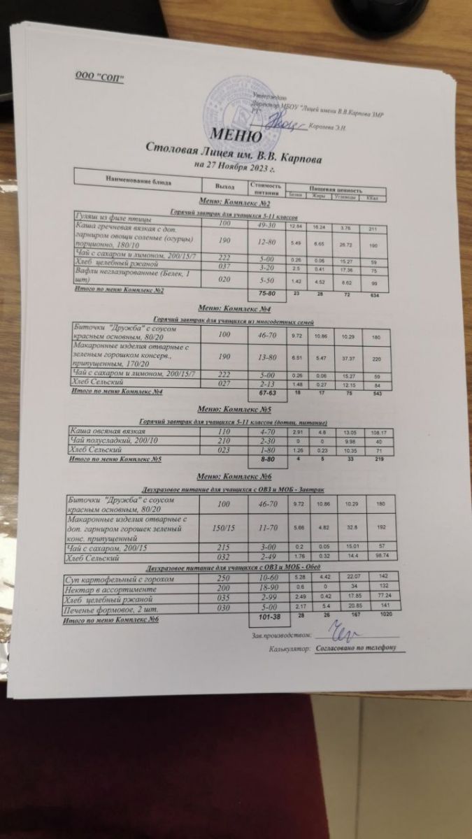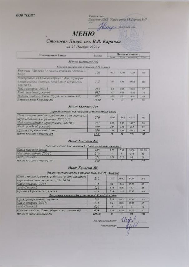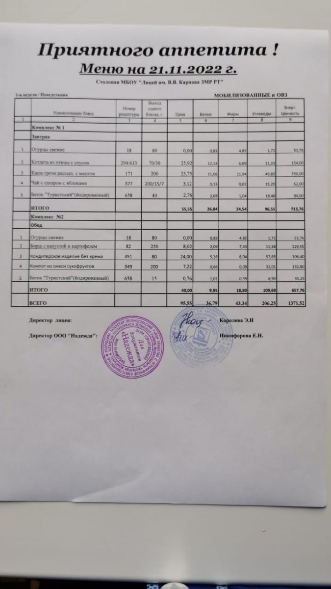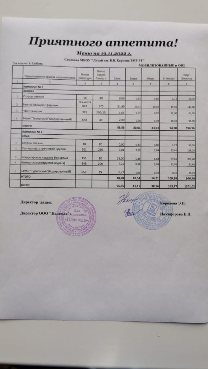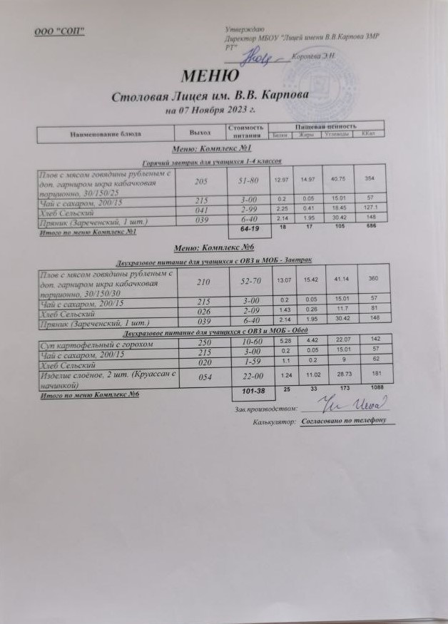 меню для учащихся с ОВЗ и мобилизованных ноябрь |