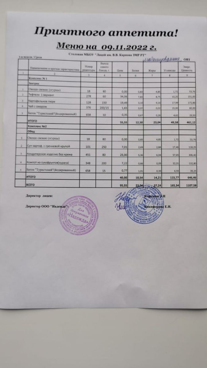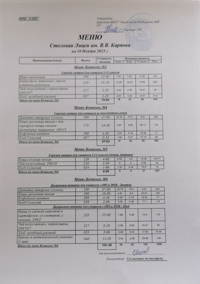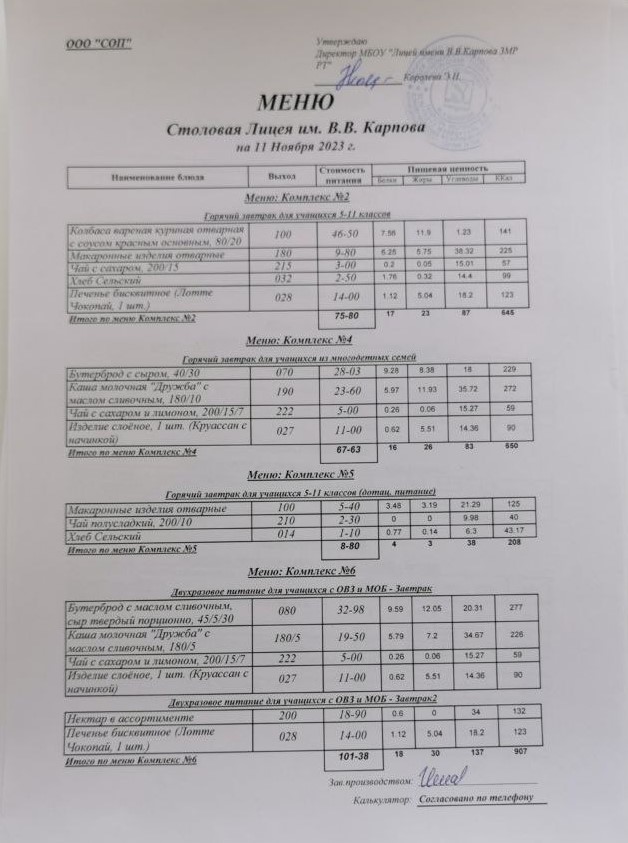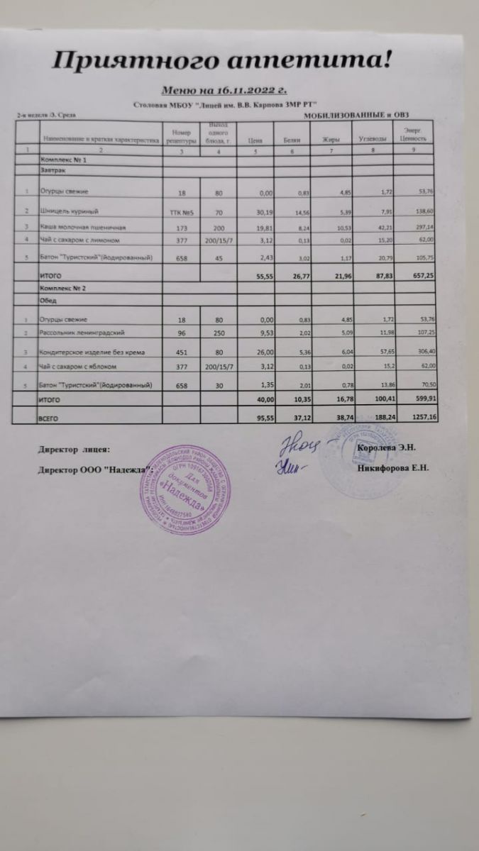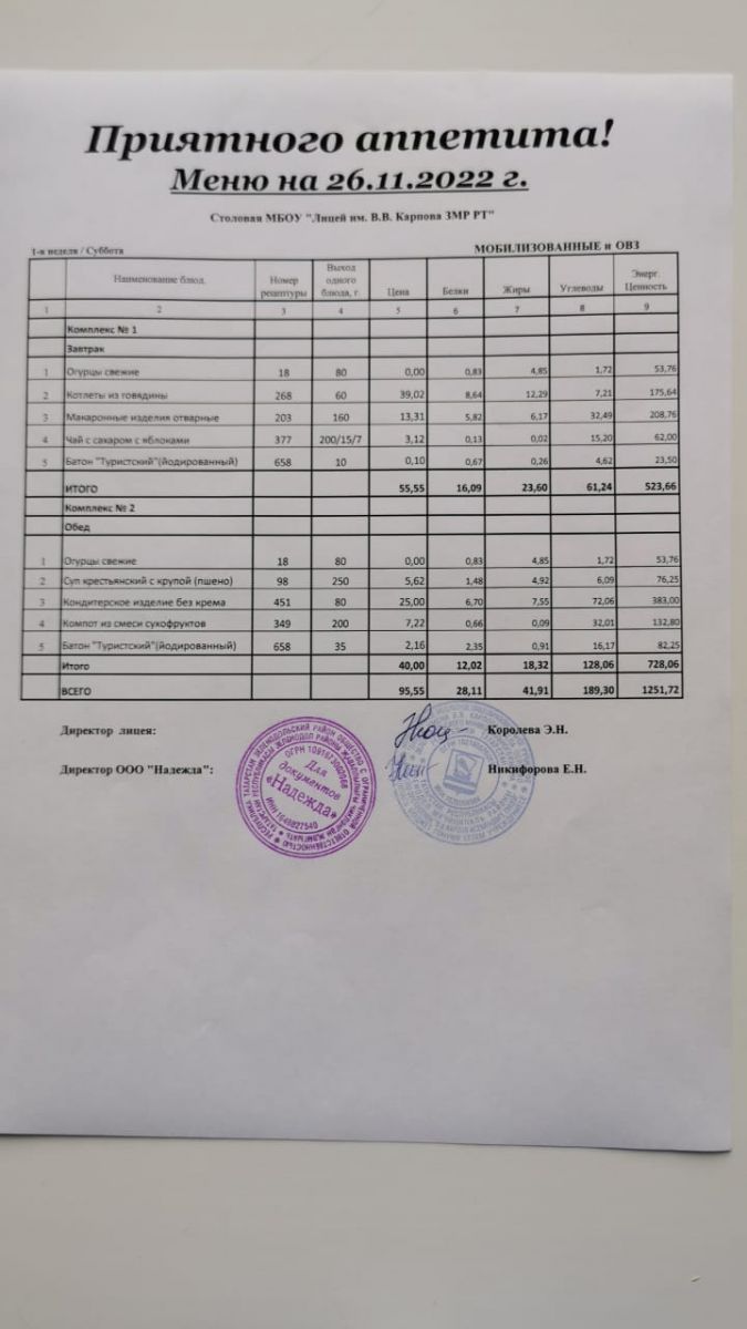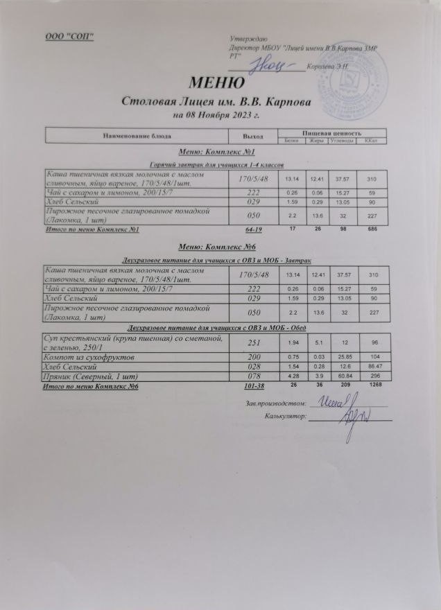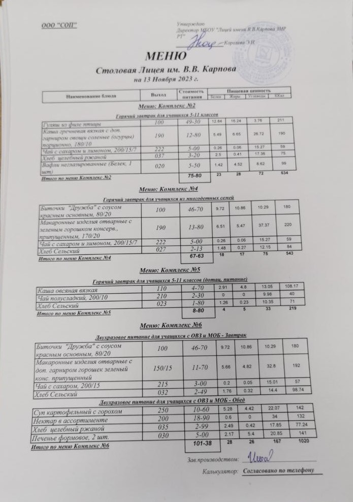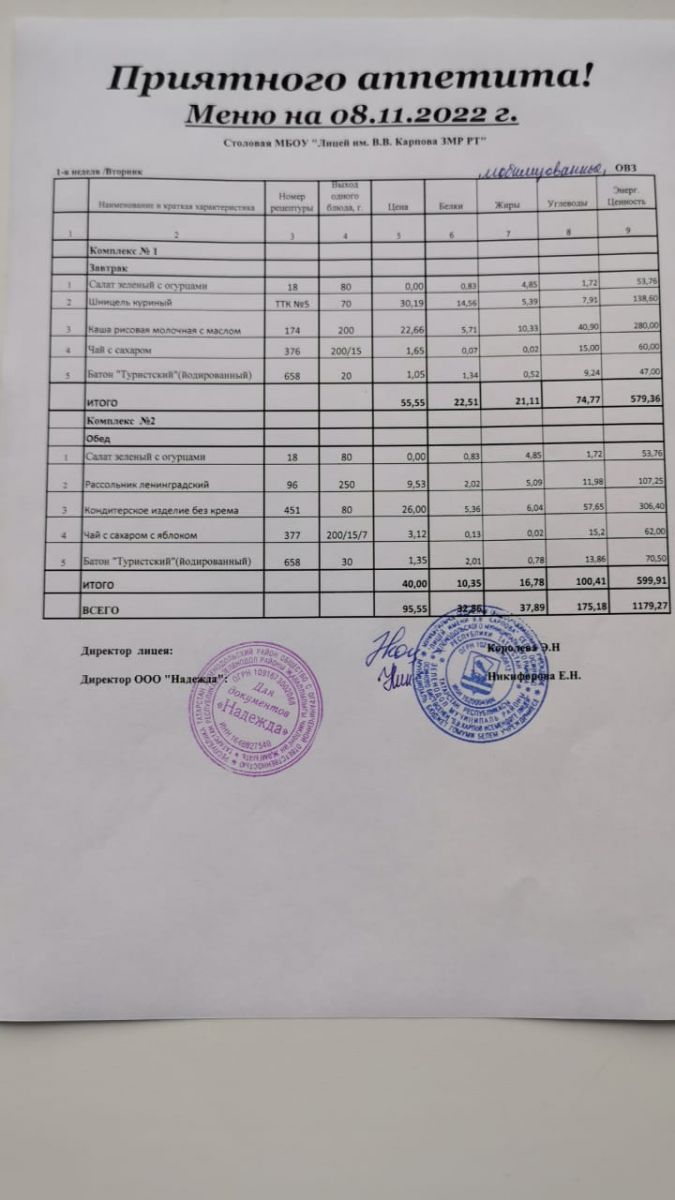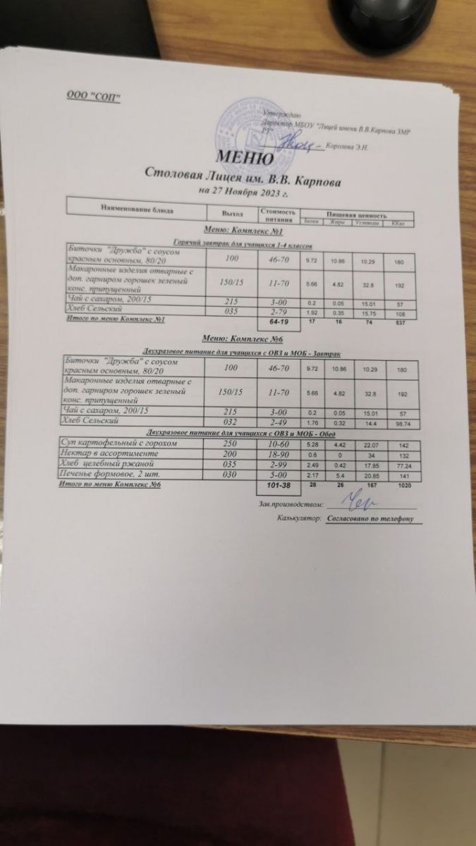 меню для учащихся с ОВЗ и мобилизованных ноябрь |