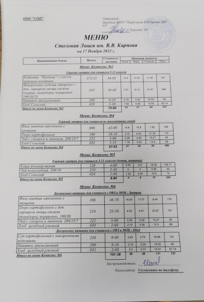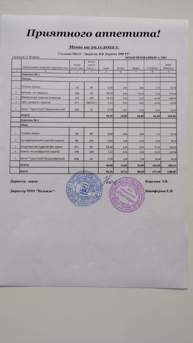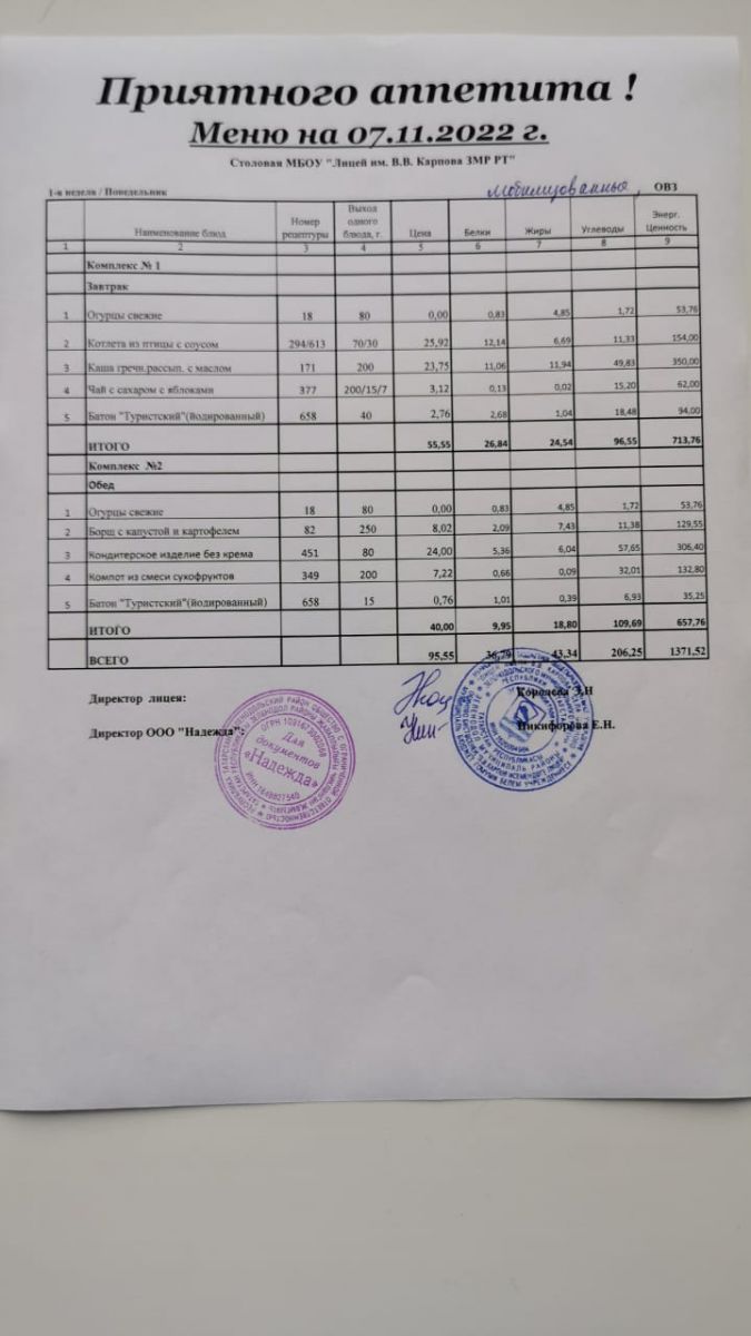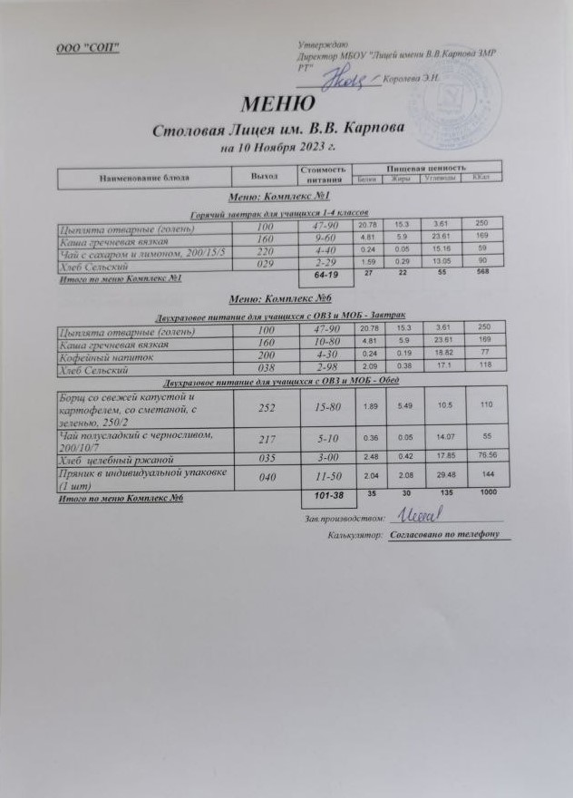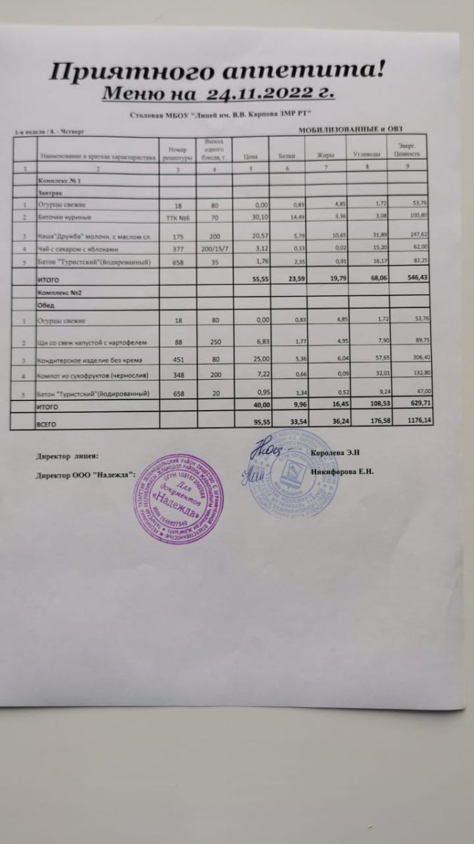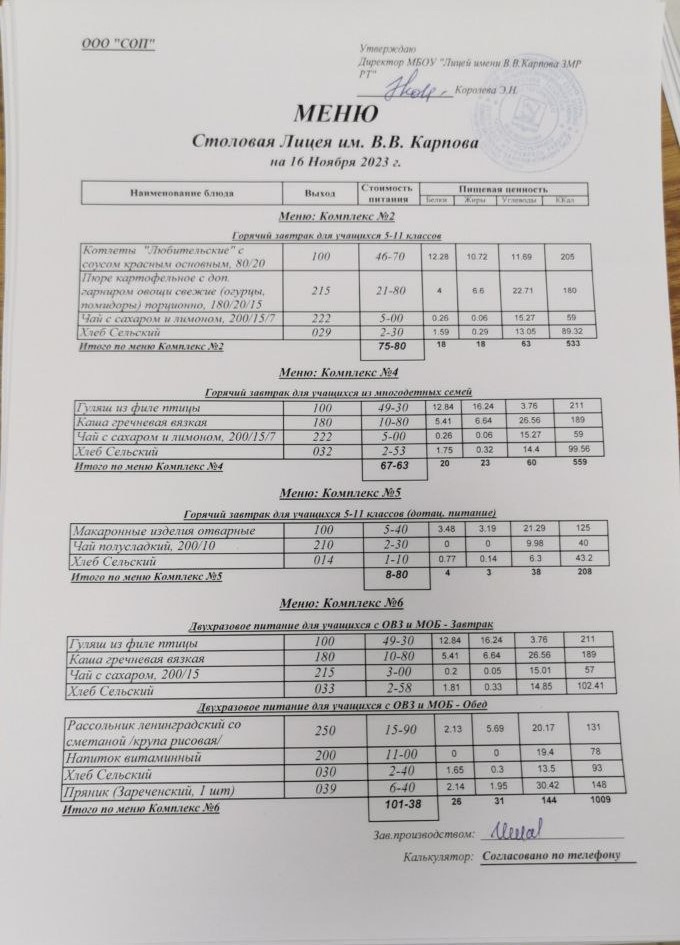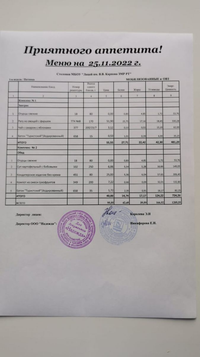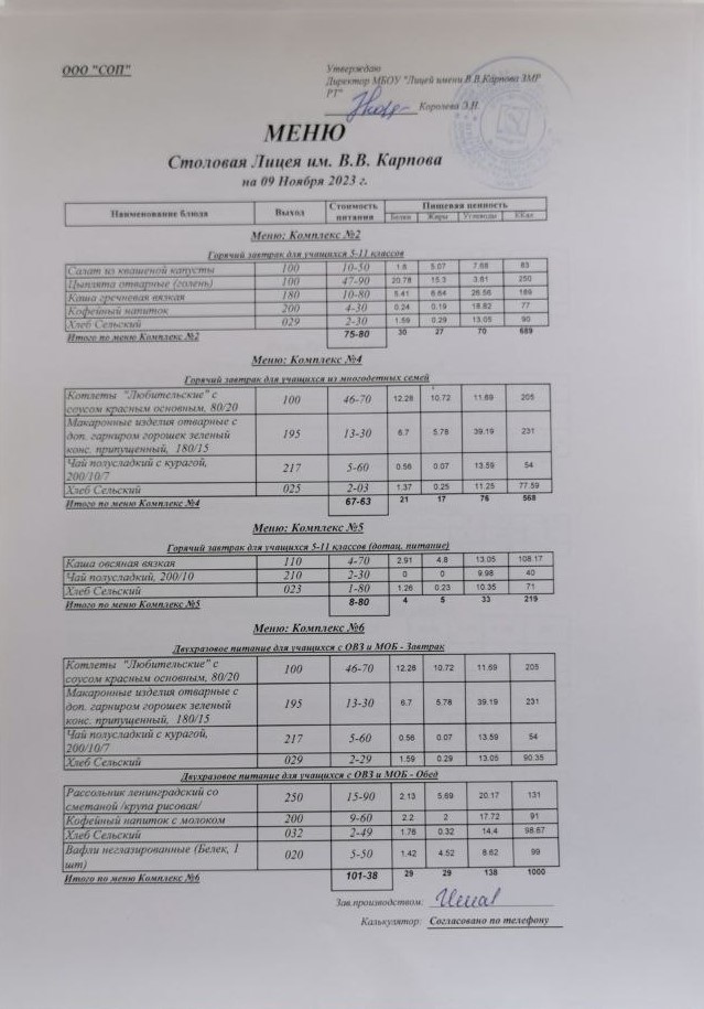 меню для учащихся с ОВЗ и мобилизованных ноябрь |