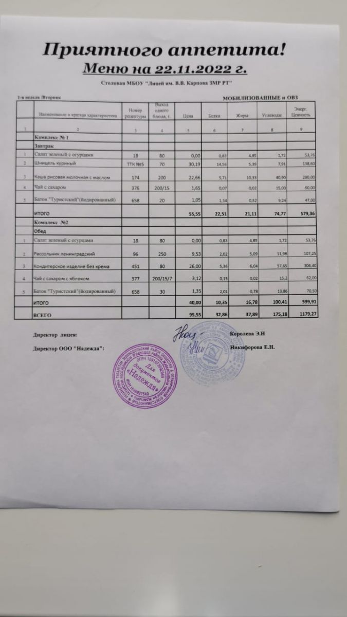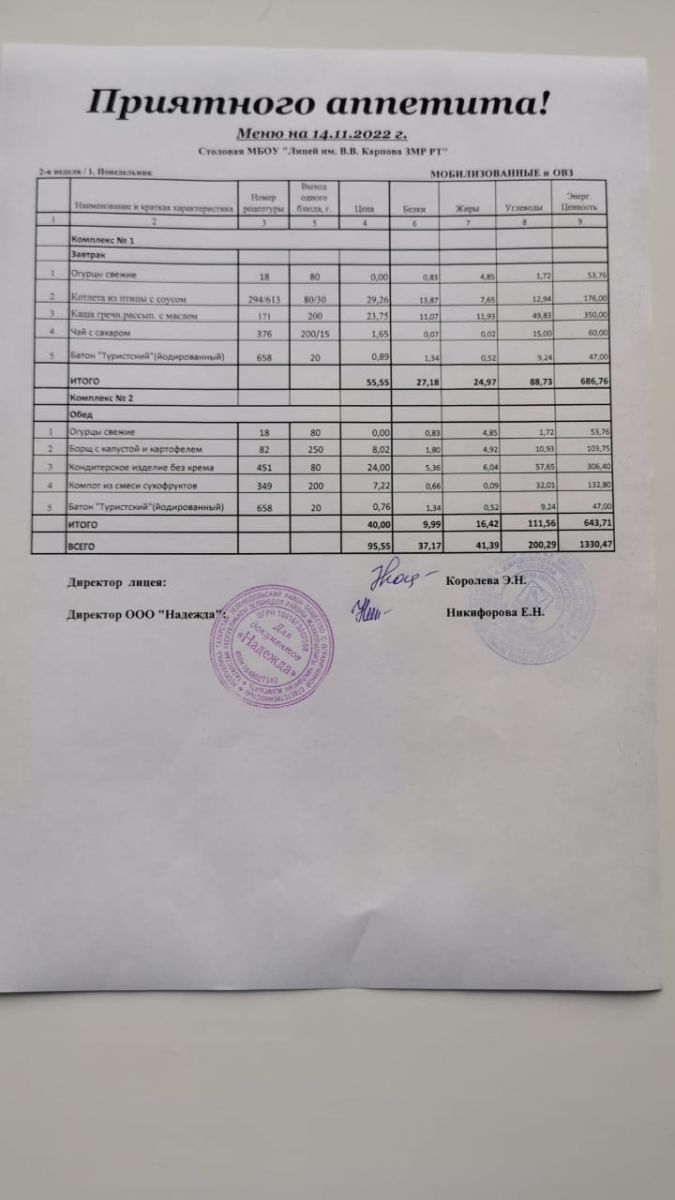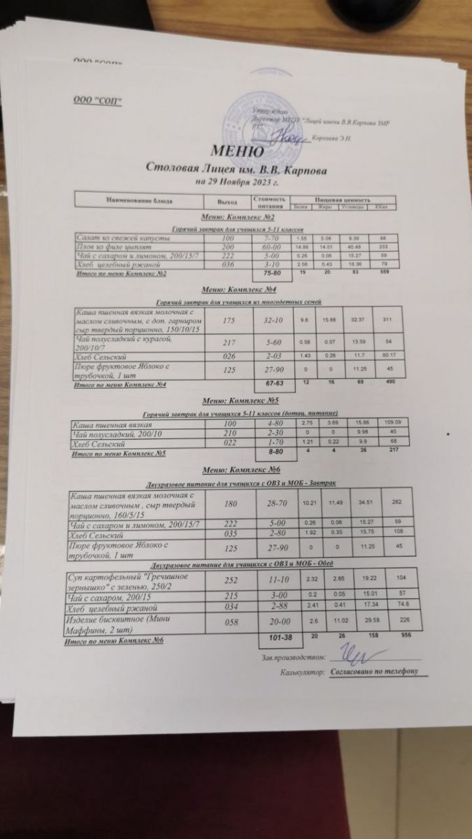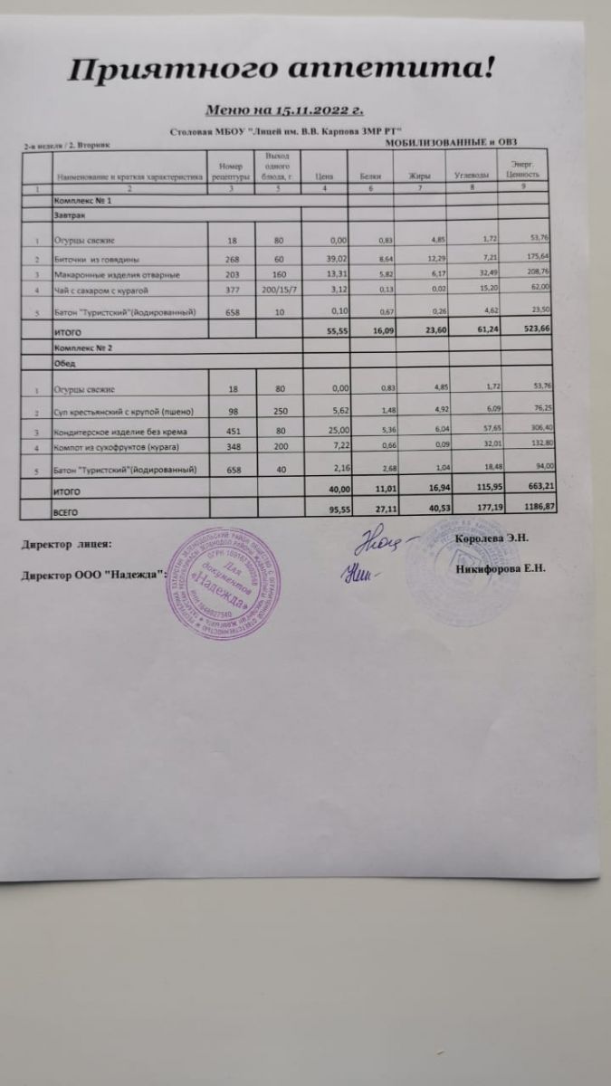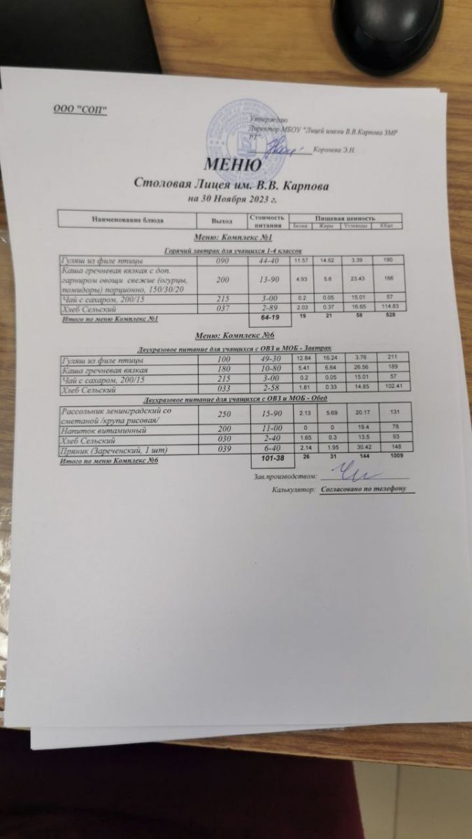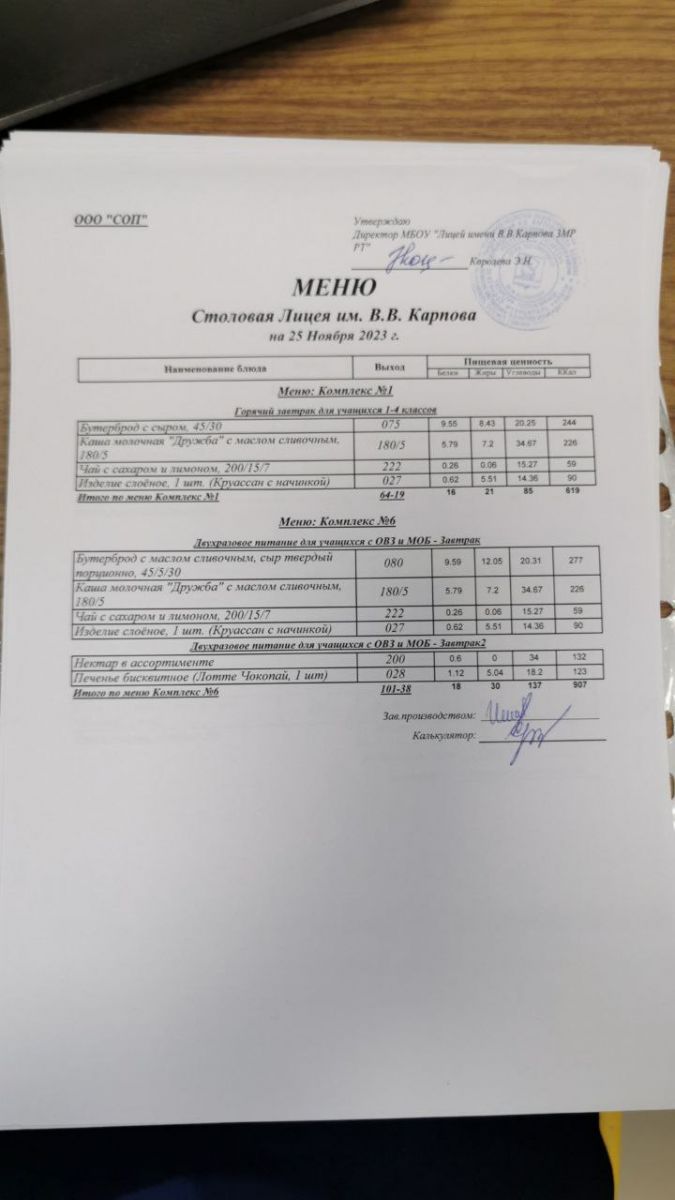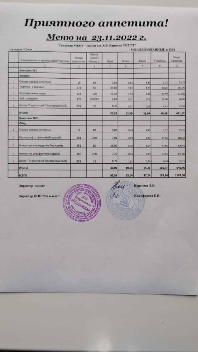меню для учащихся с ОВЗ и мобилизованных ноябрь |