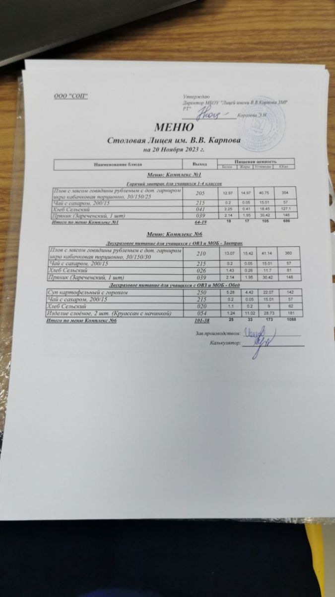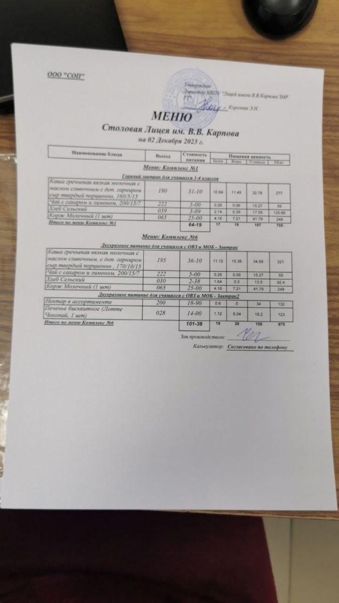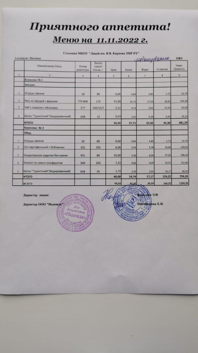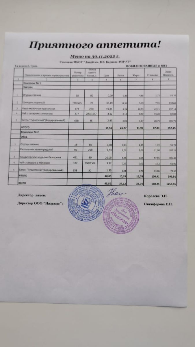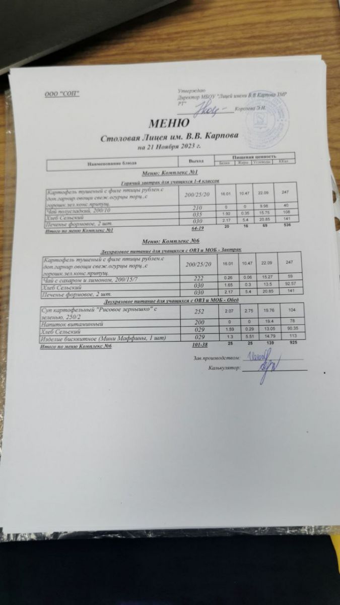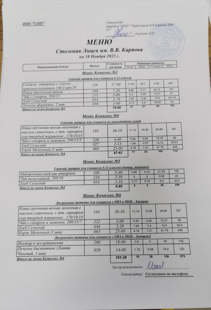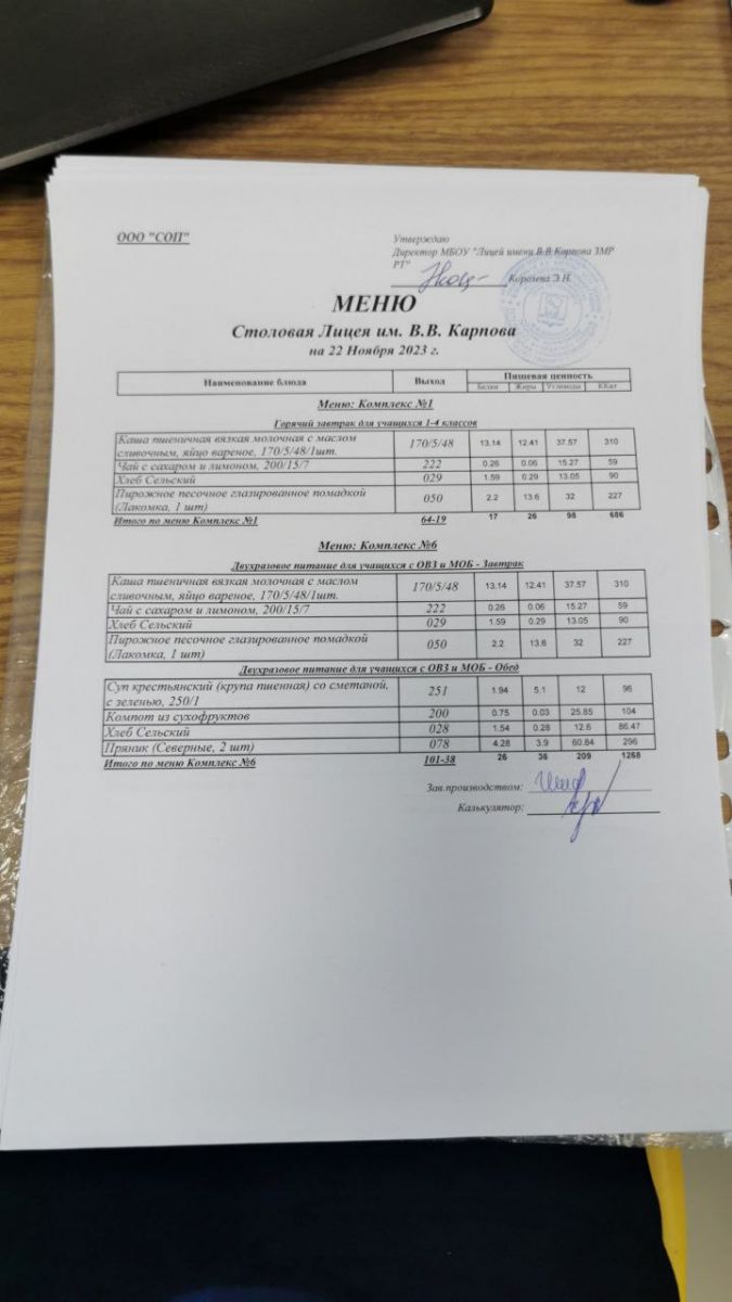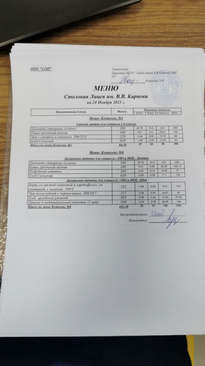 меню для учащихся с ОВЗ и мобилизованных ноябрь |