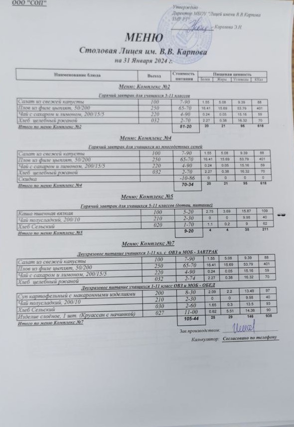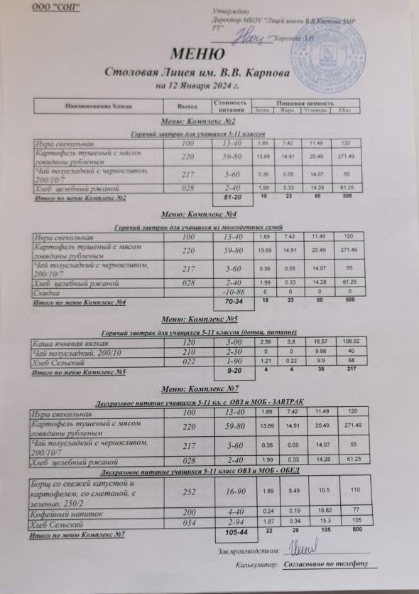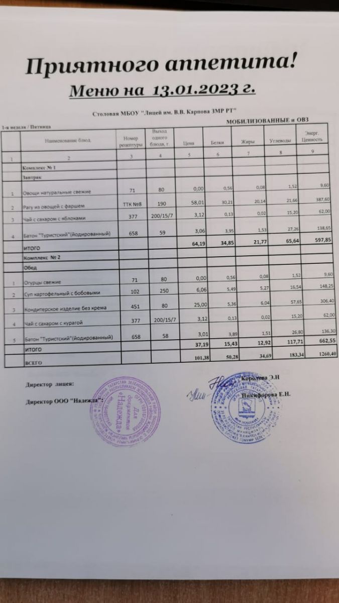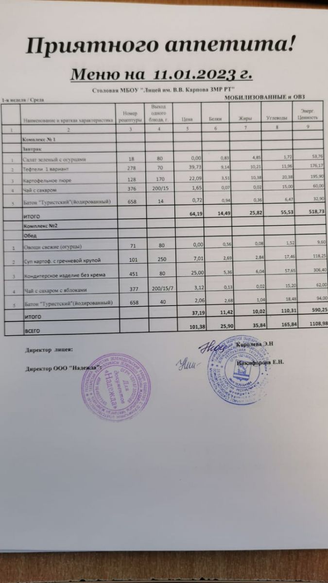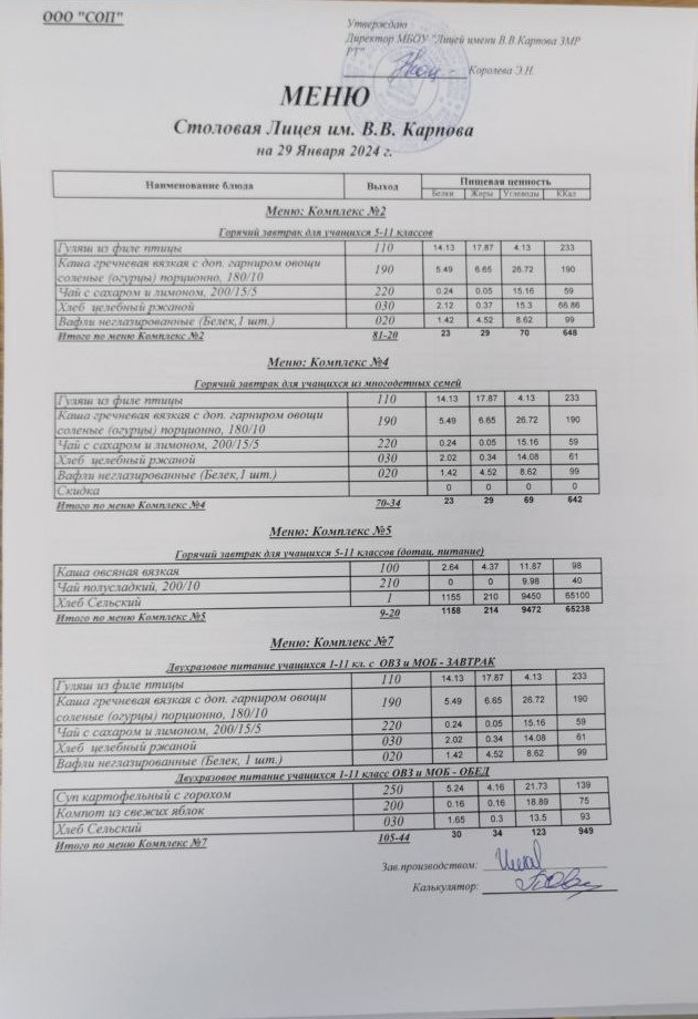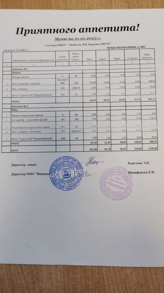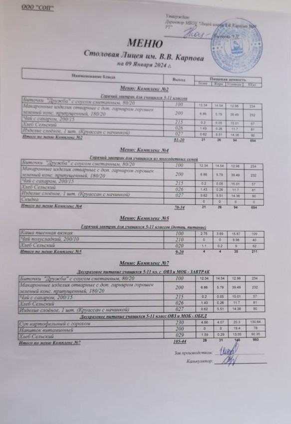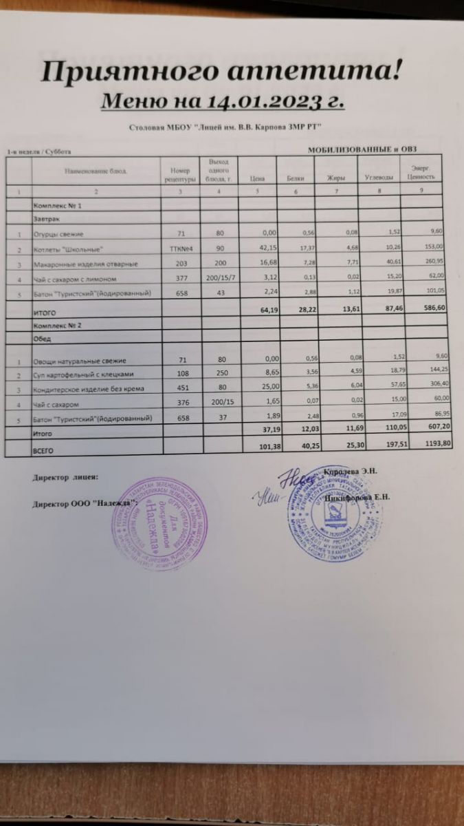 меню для учащихся с ОВЗ и мобилизованных январь |