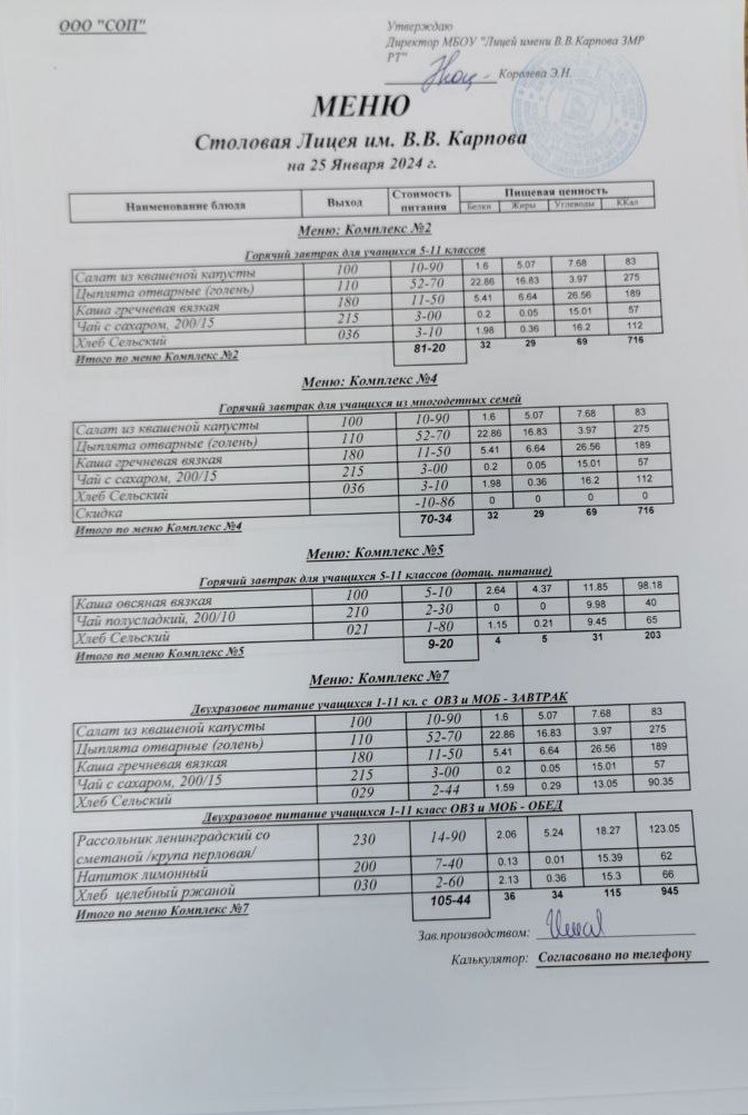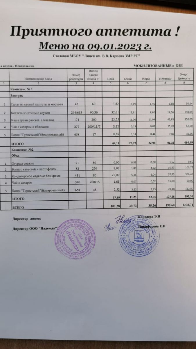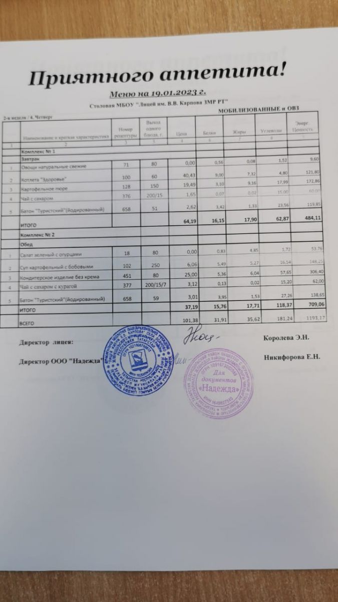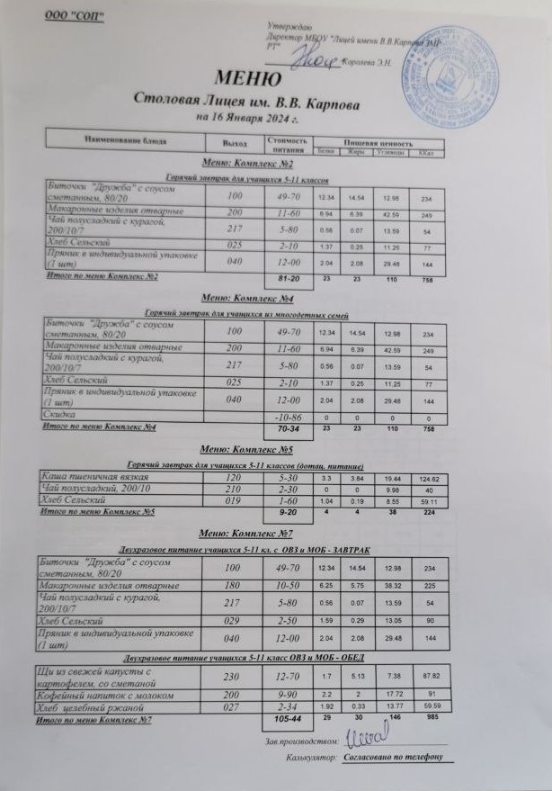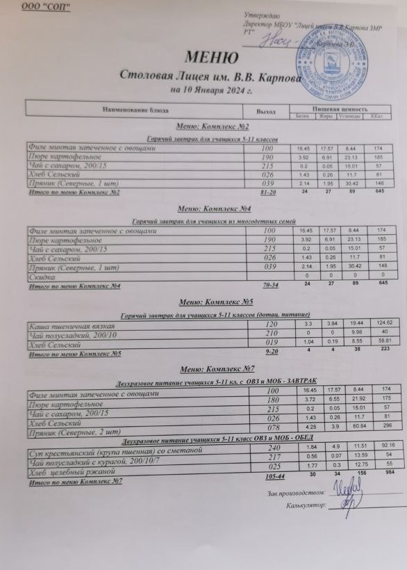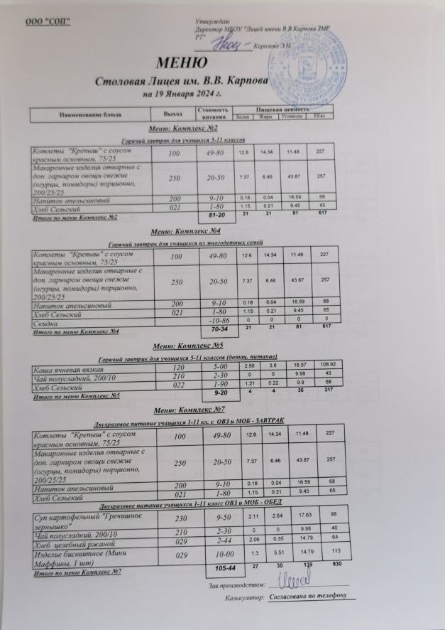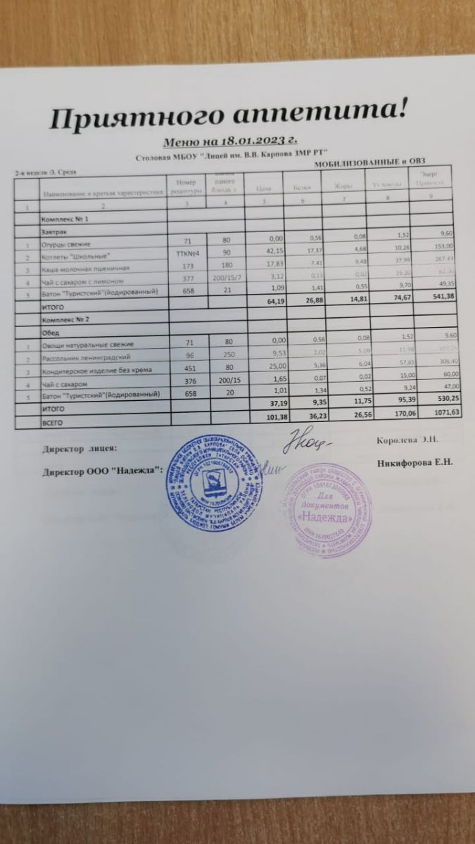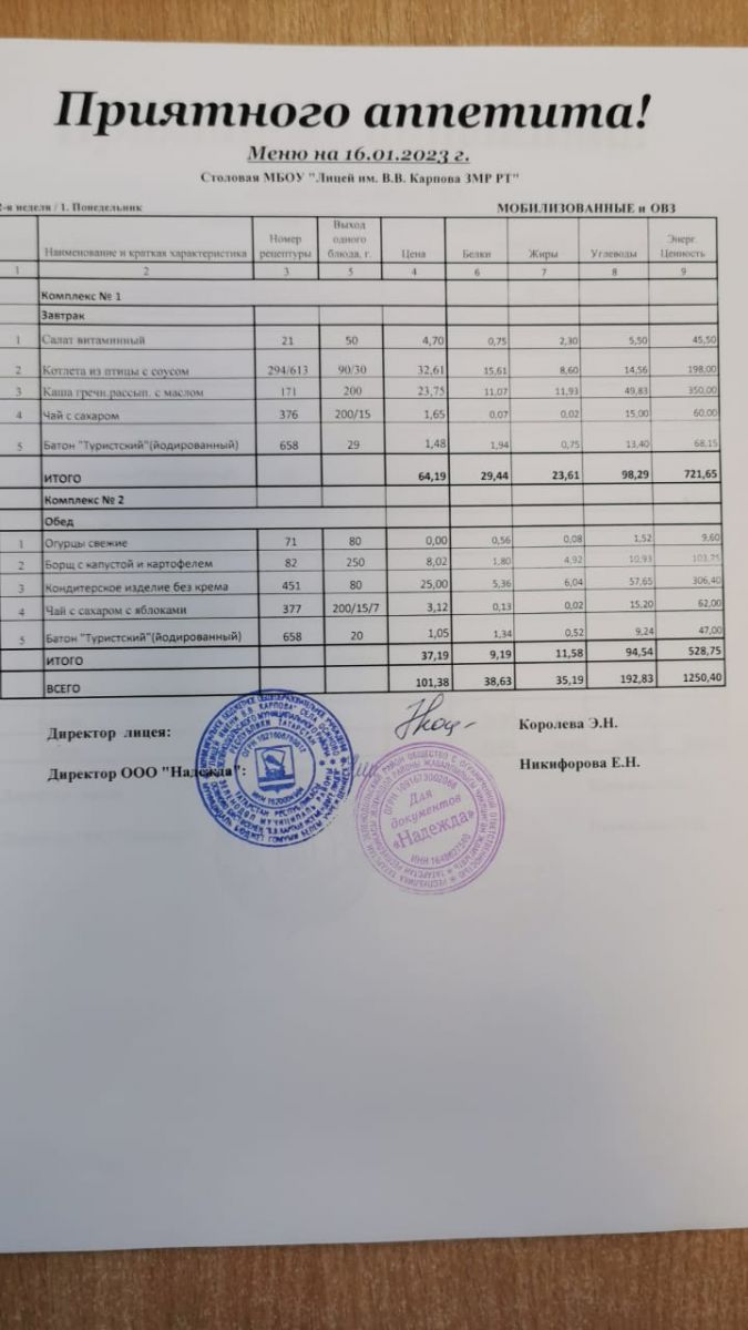 меню для учащихся с ОВЗ и мобилизованных январь |