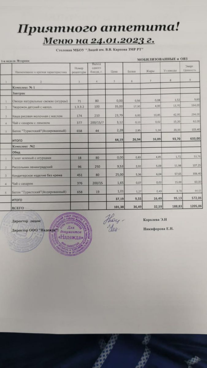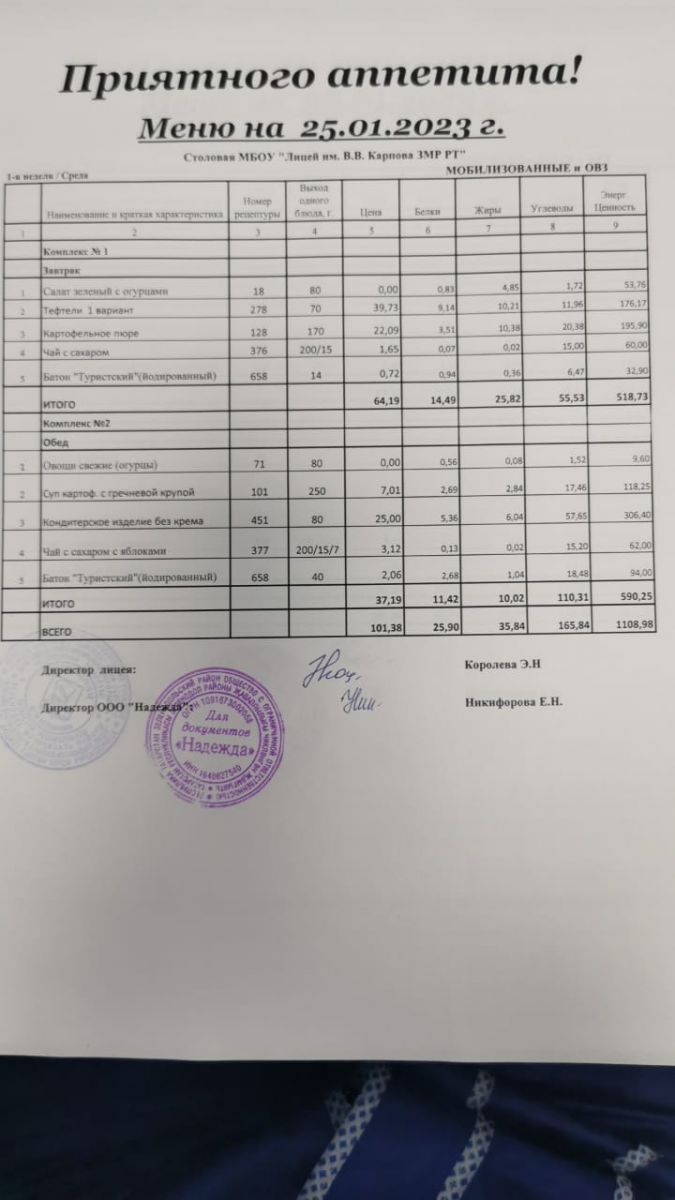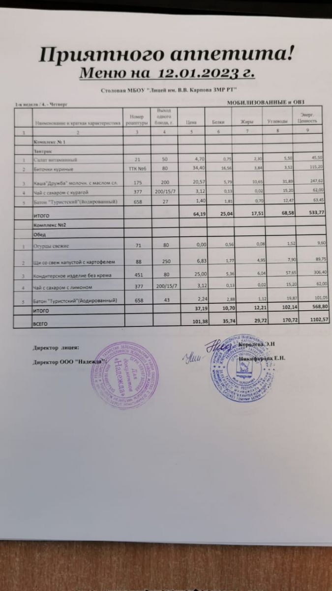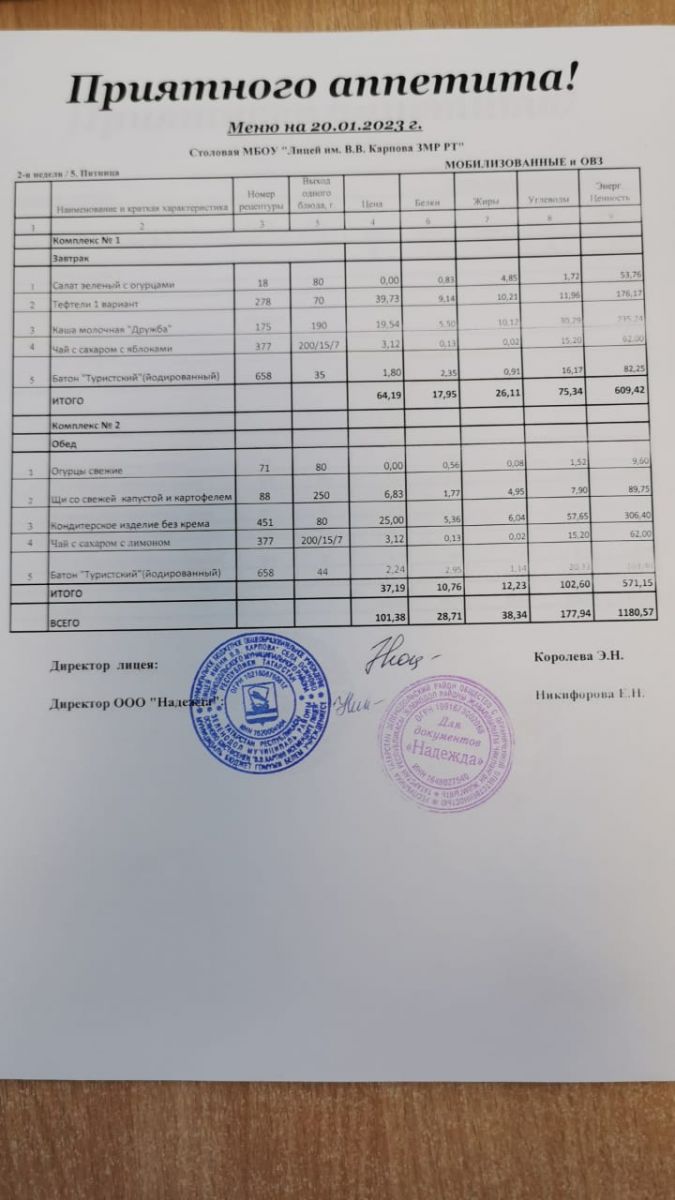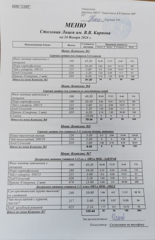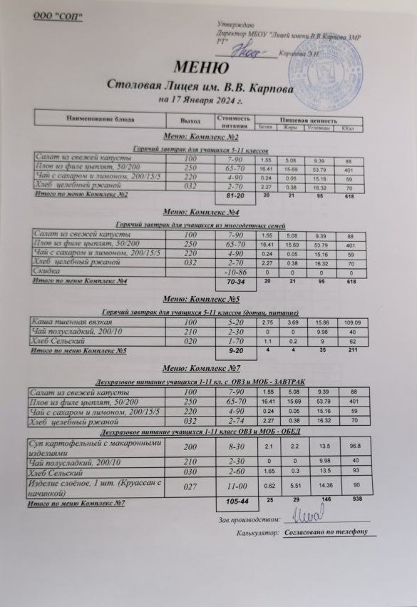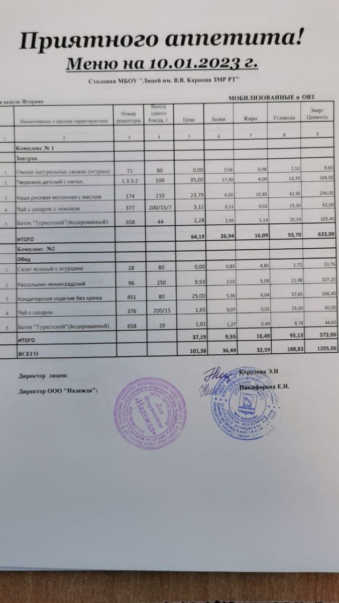 меню для учащихся с ОВЗ и мобилизованных январь |