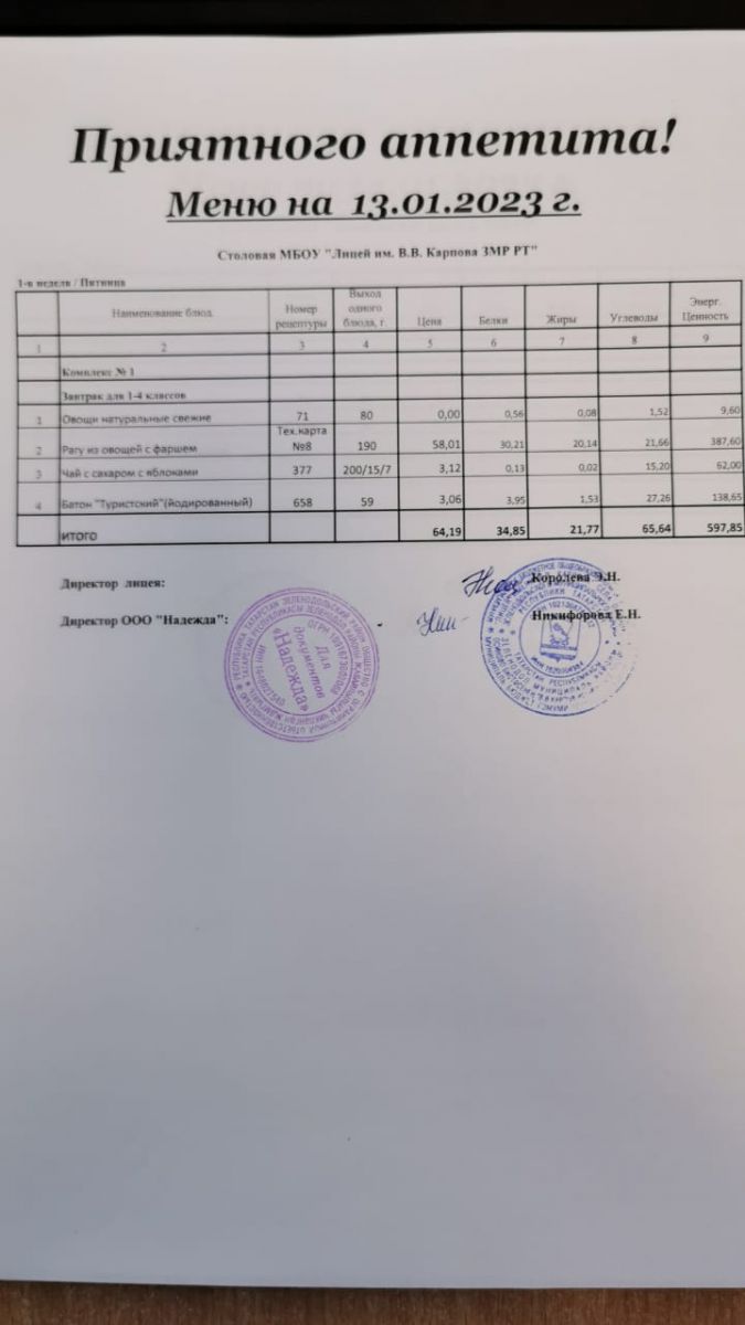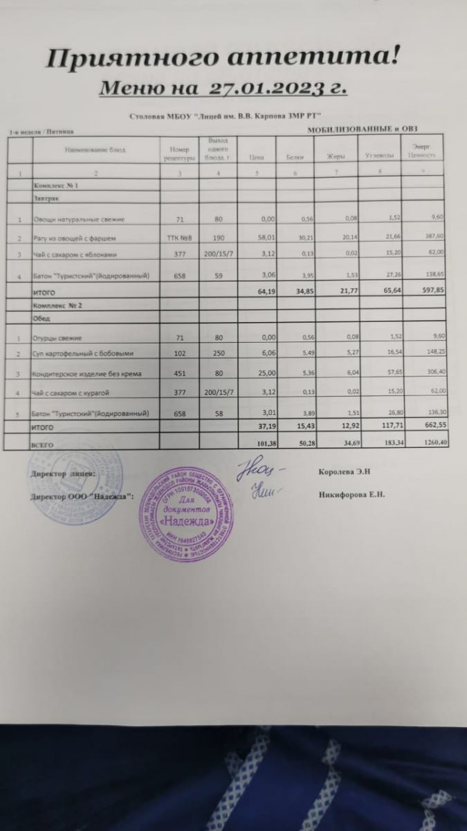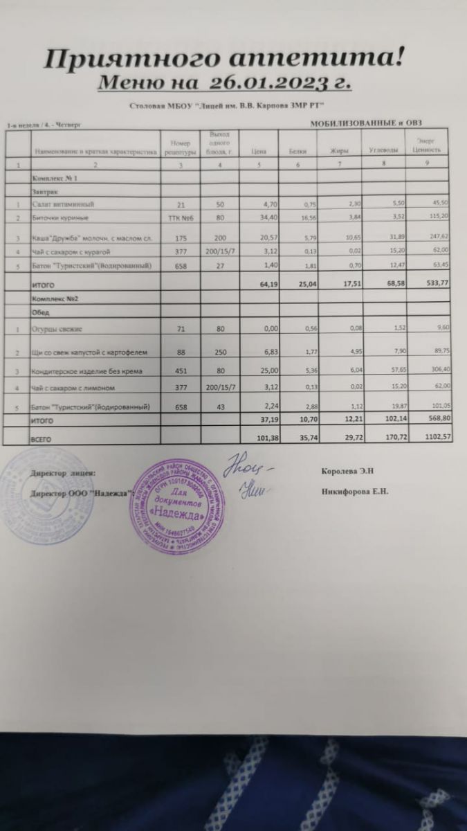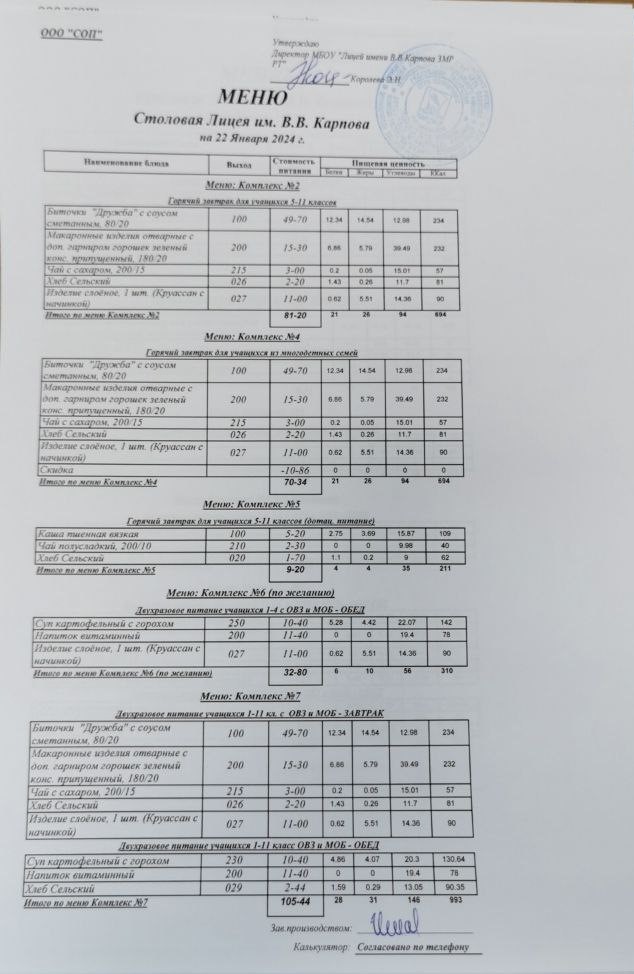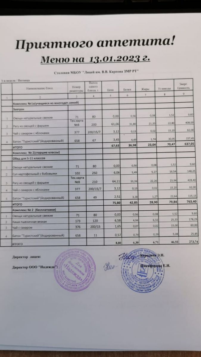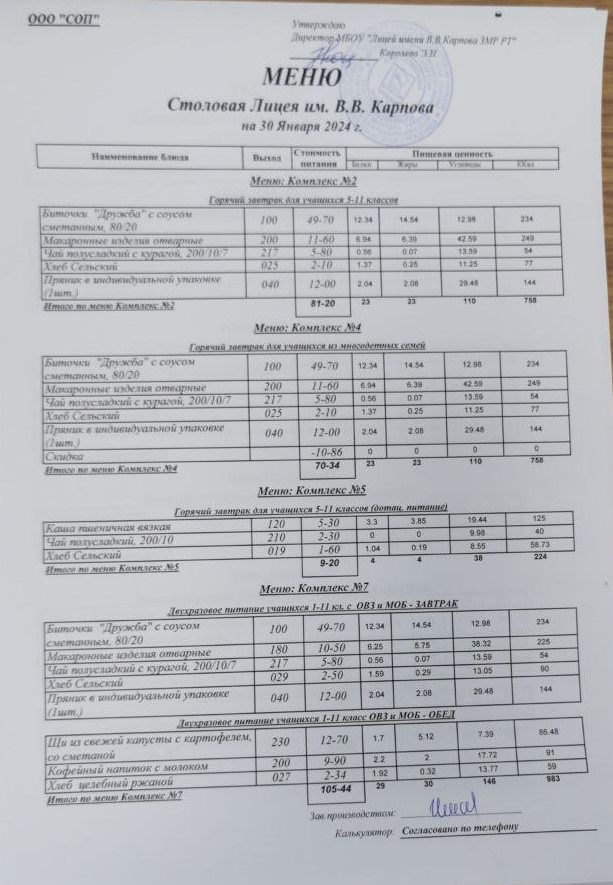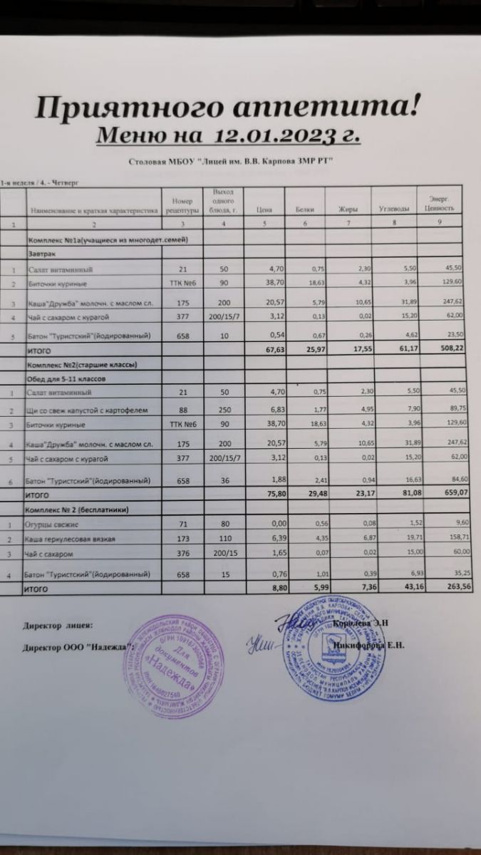 меню для учащихся с ОВЗ и мобилизованных январь |