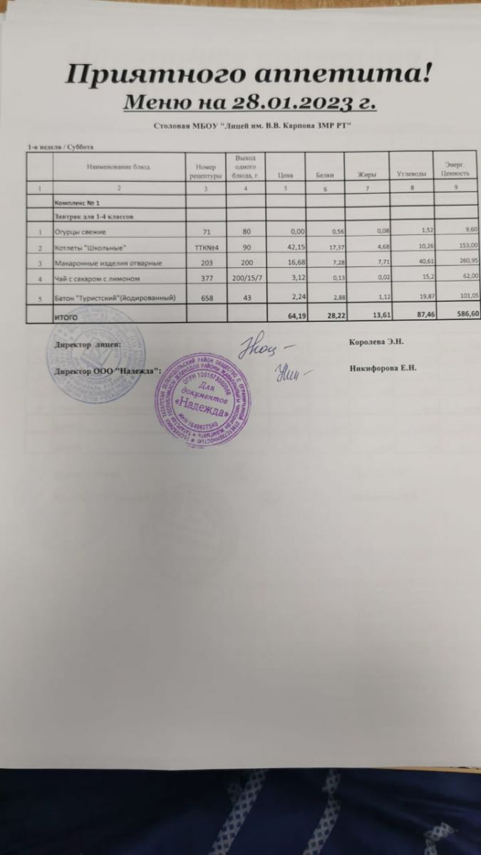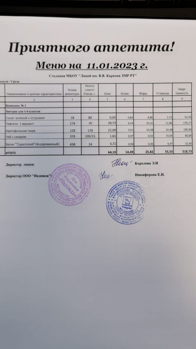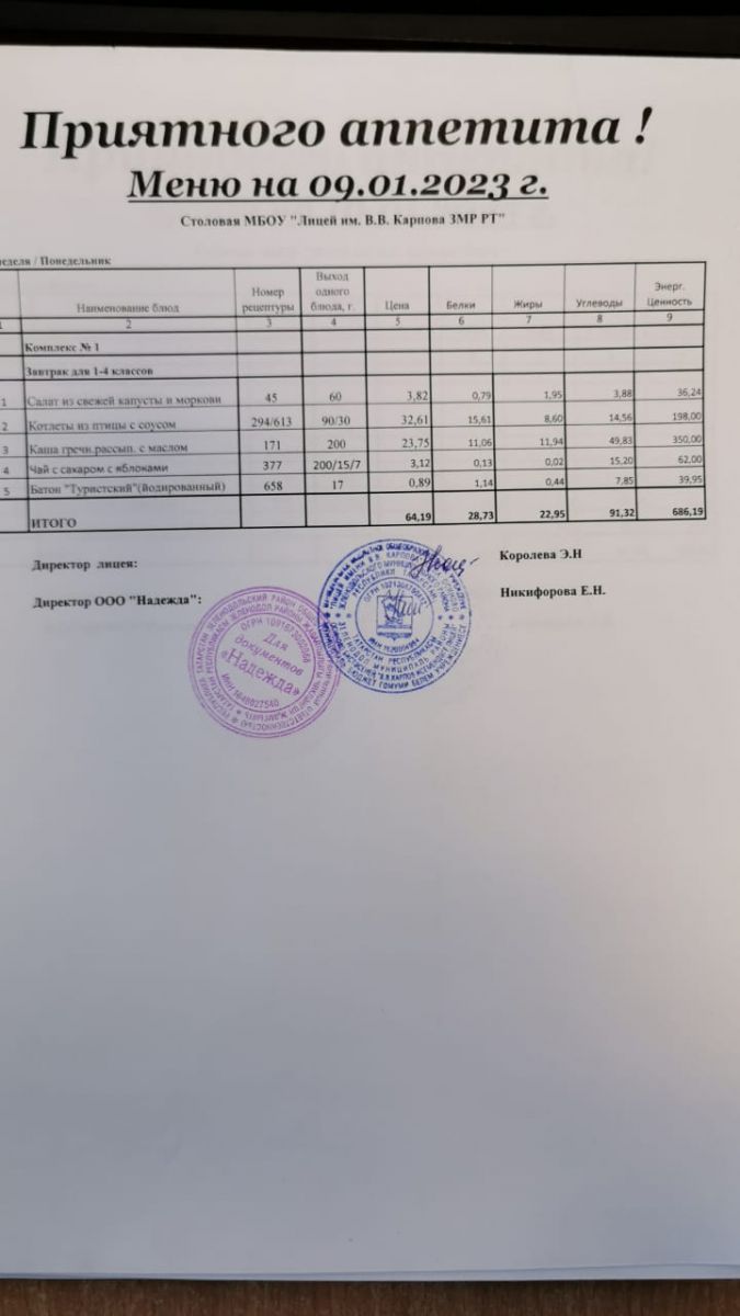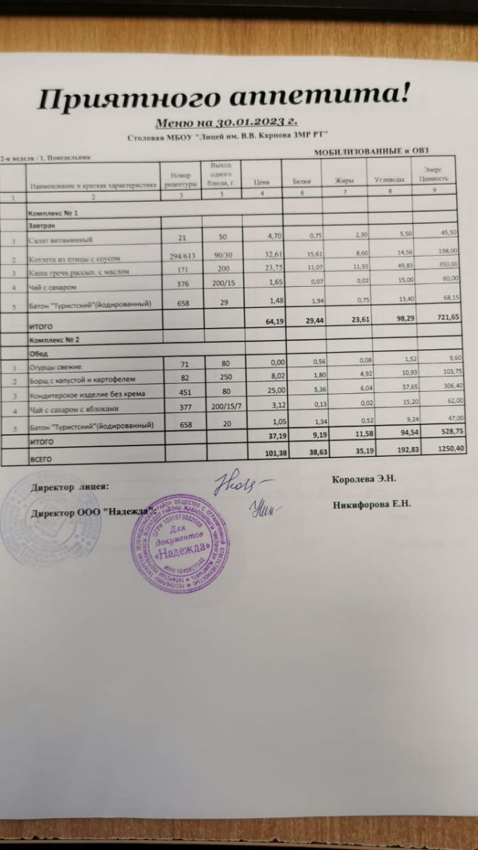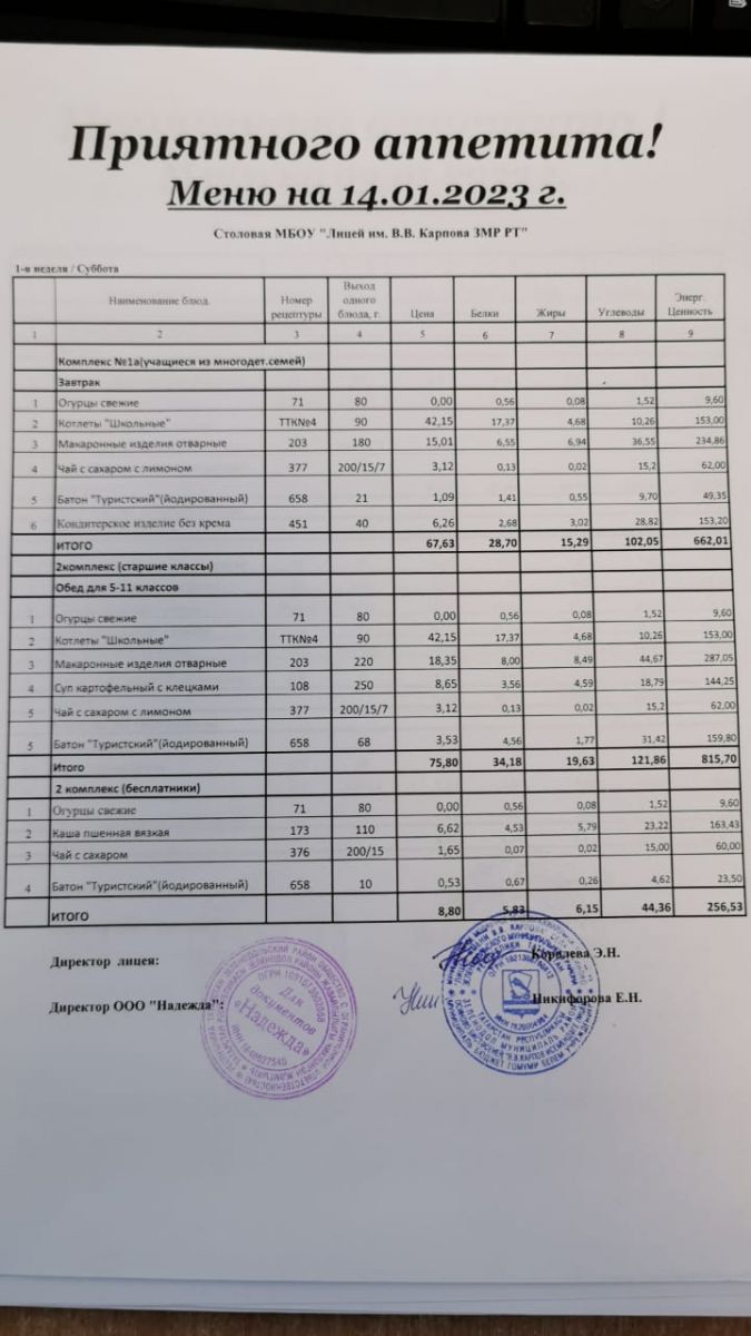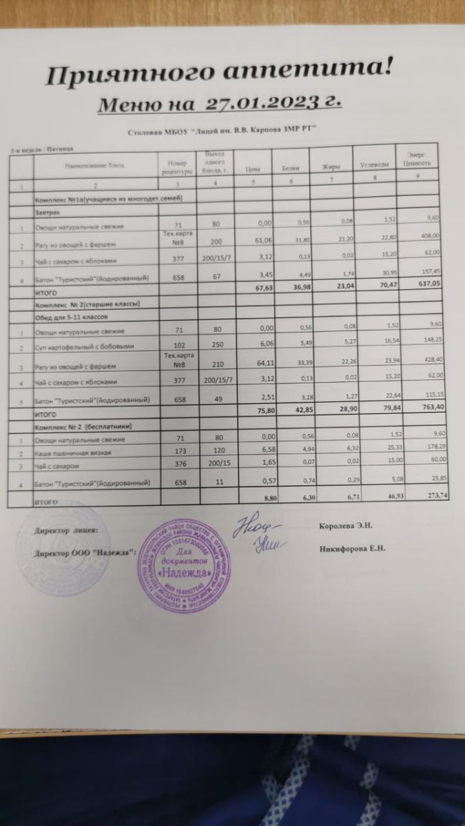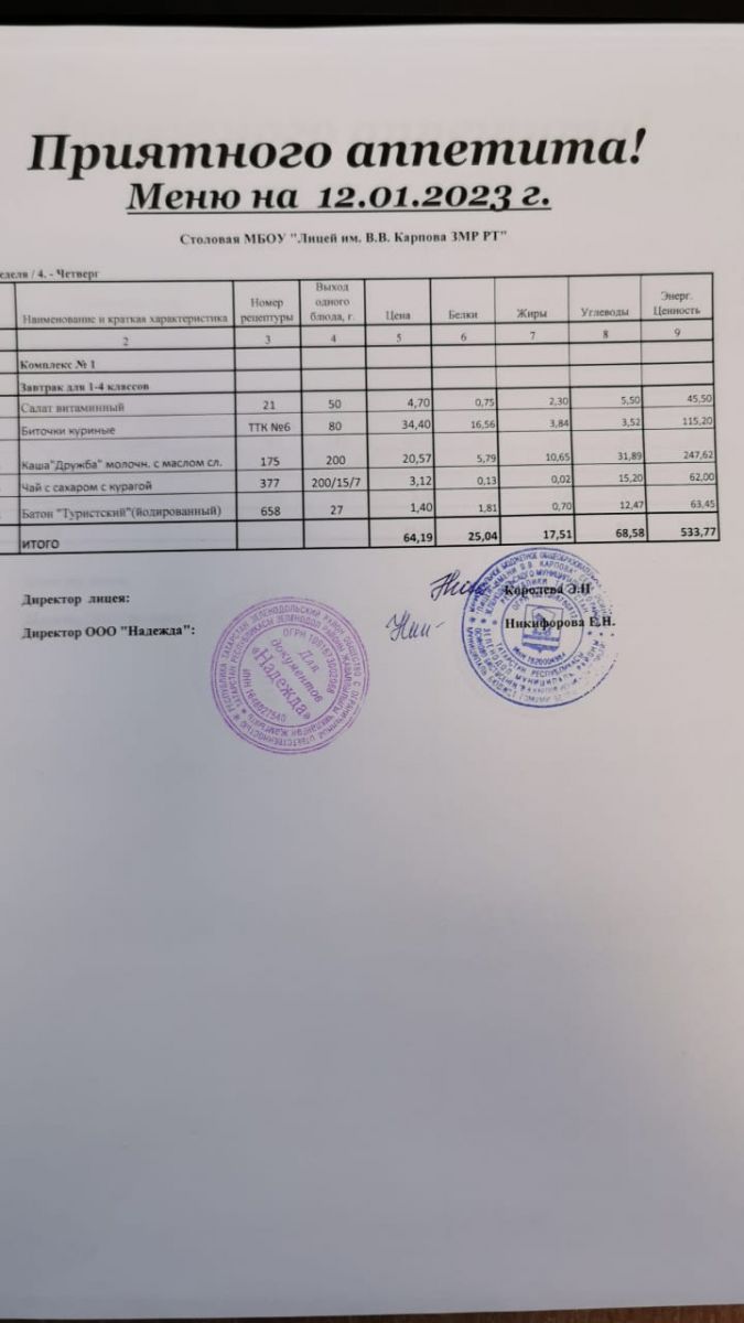 меню для учащихся с ОВЗ и мобилизованных январь |
