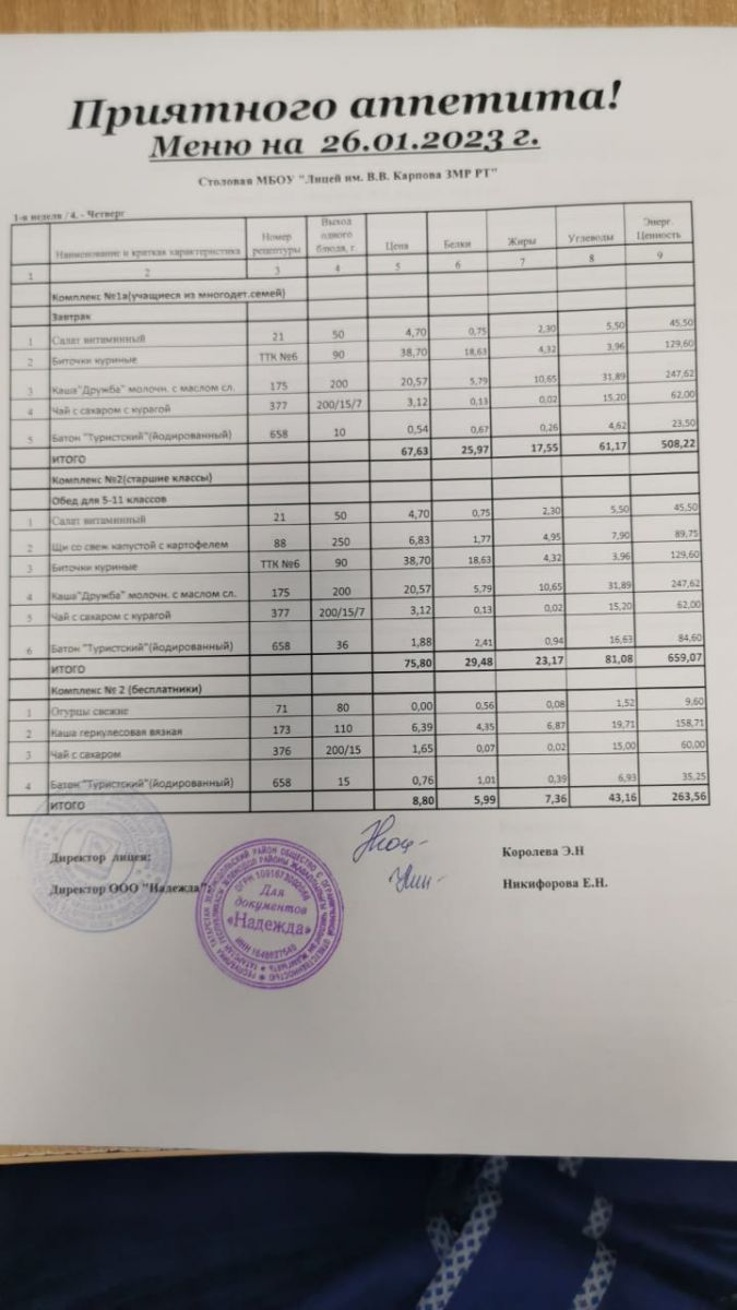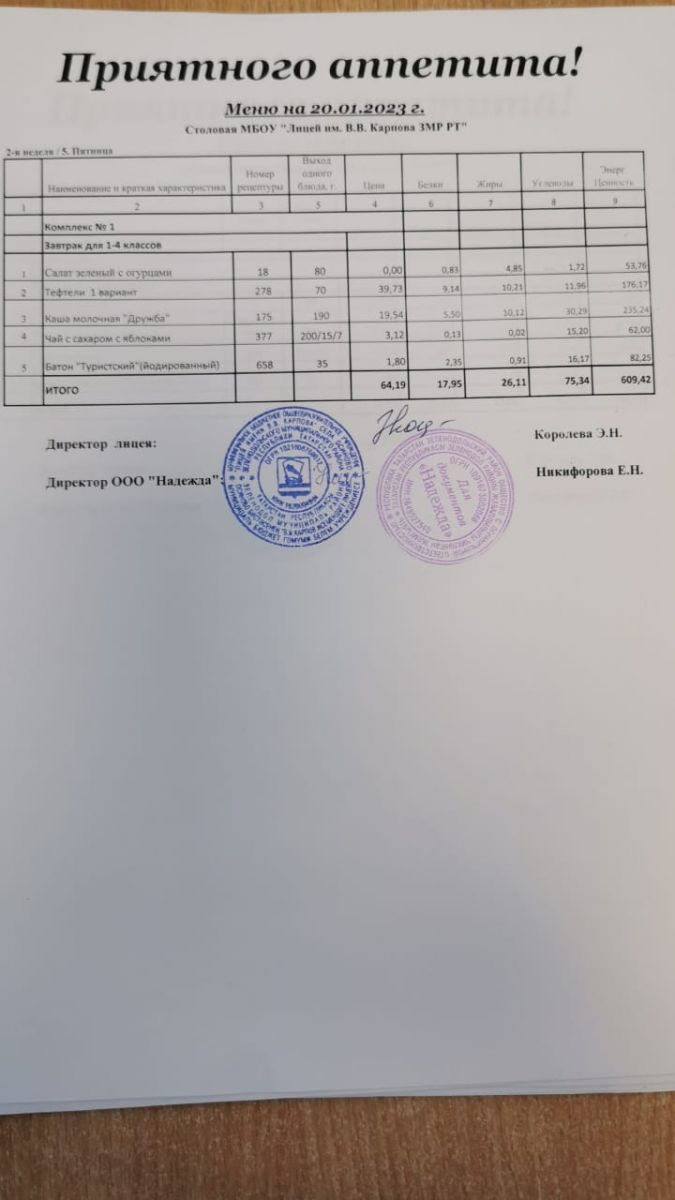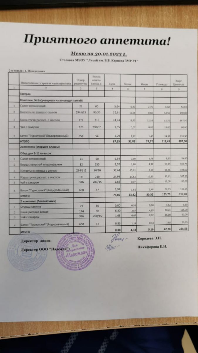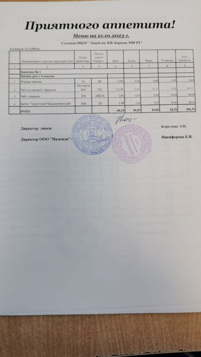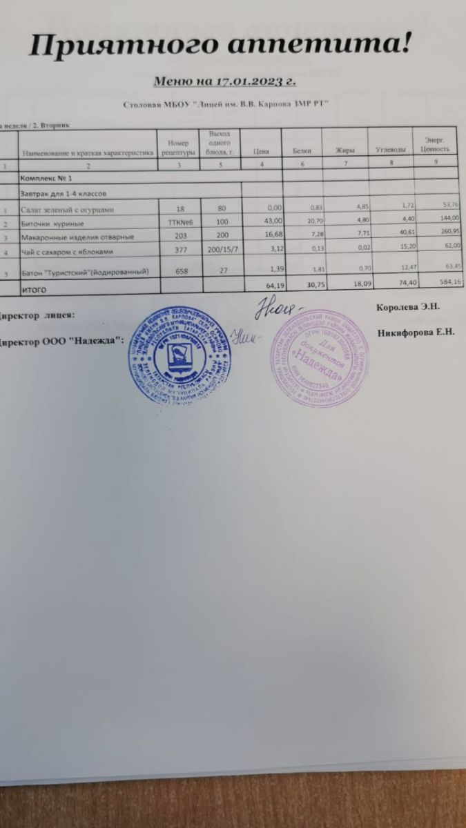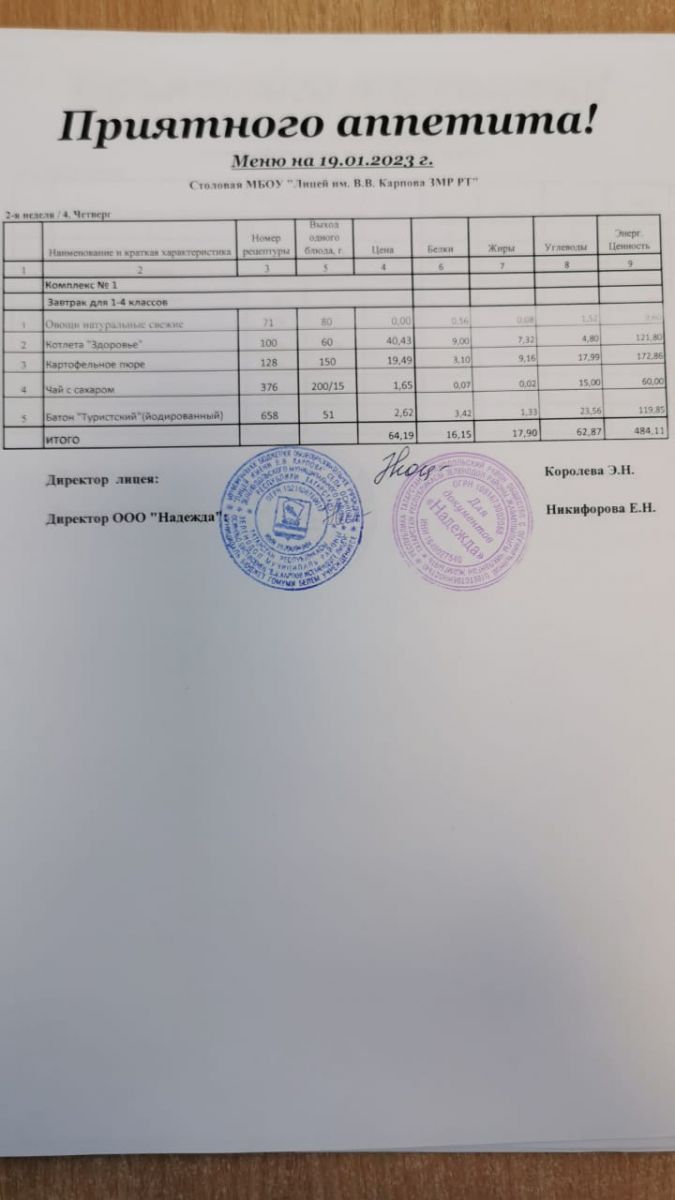 меню для учащихся с ОВЗ и мобилизованных январь |
