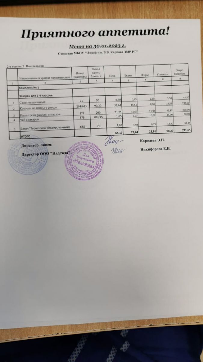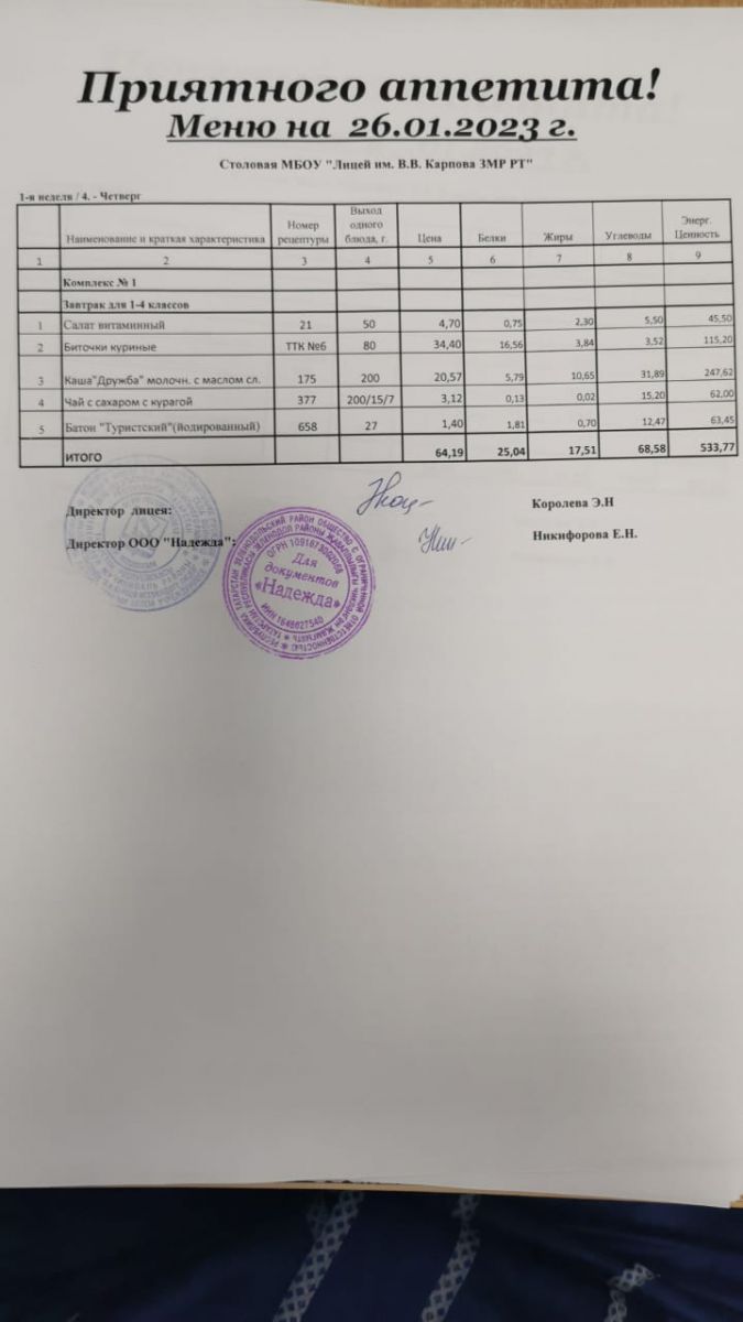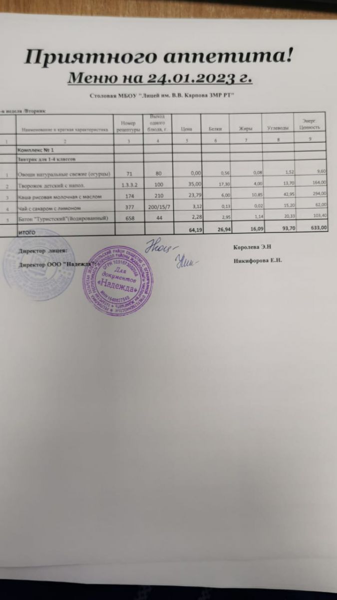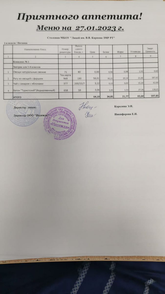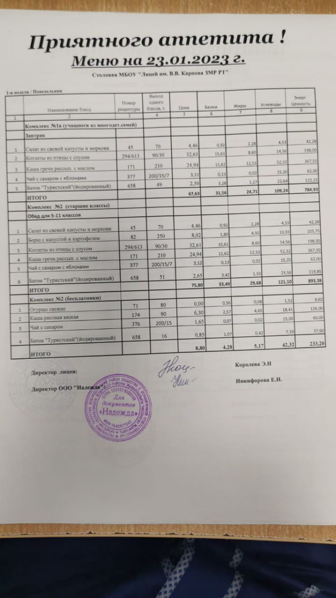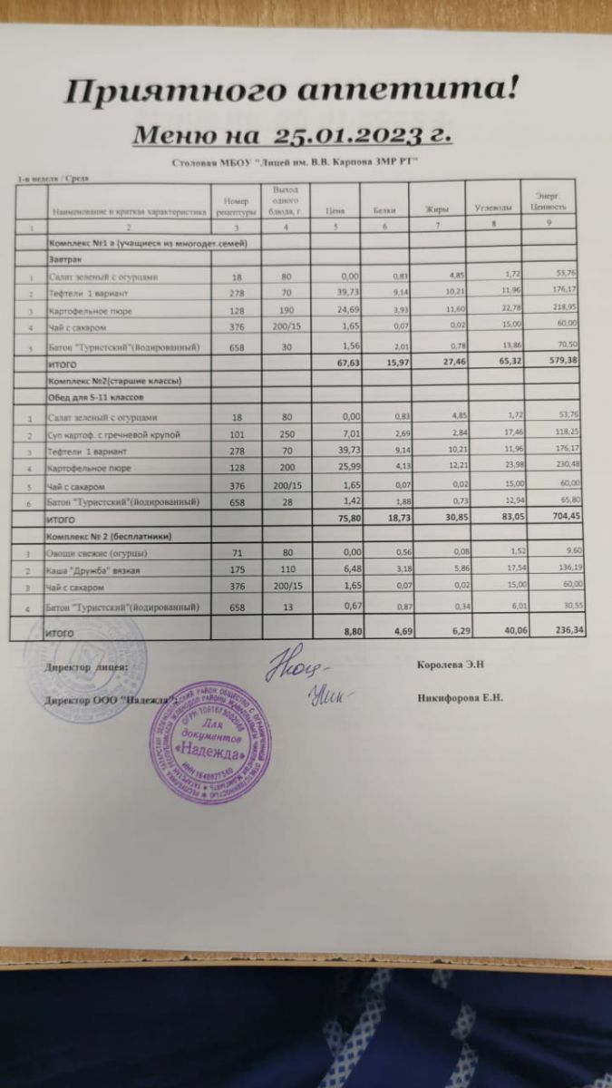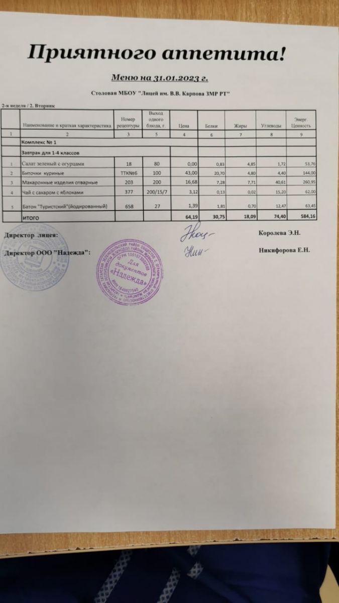 меню для учащихся с ОВЗ и мобилизованных январь |
