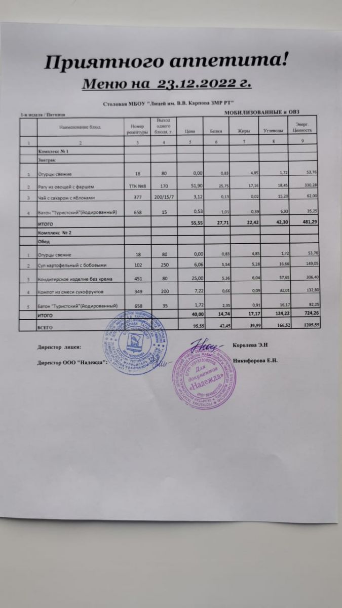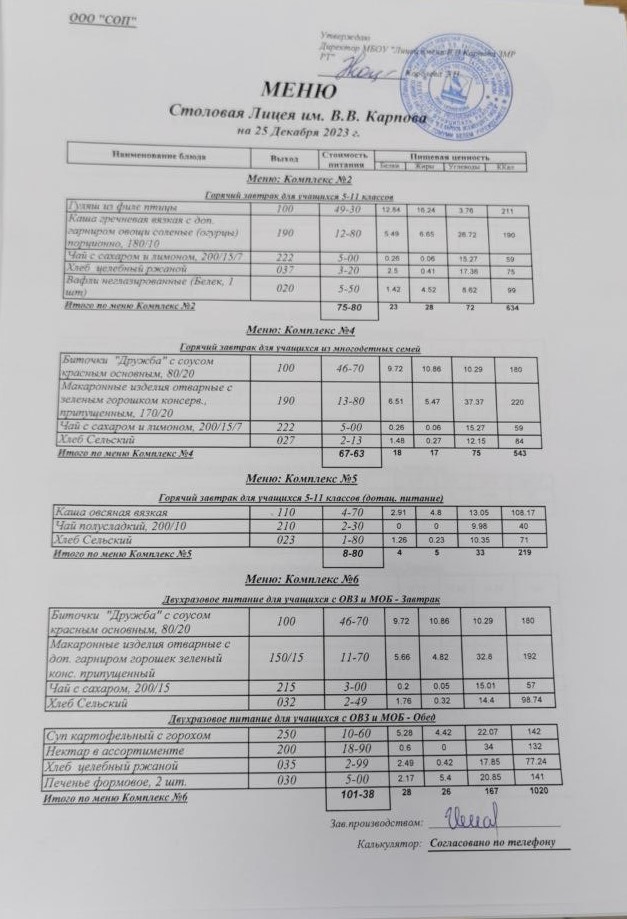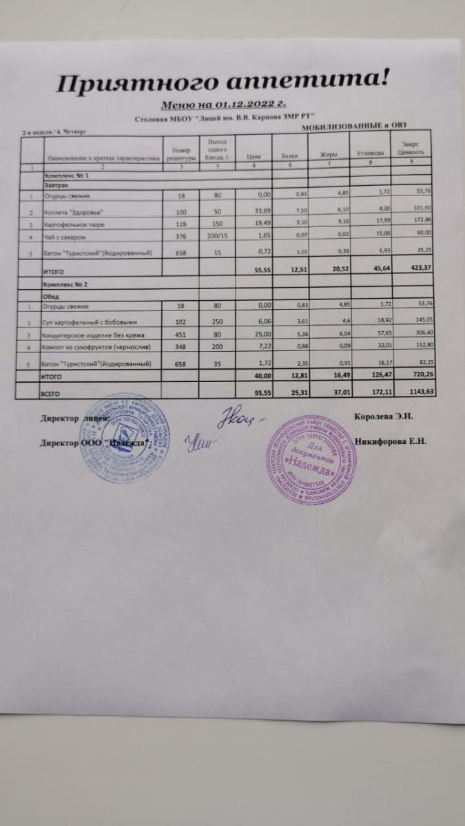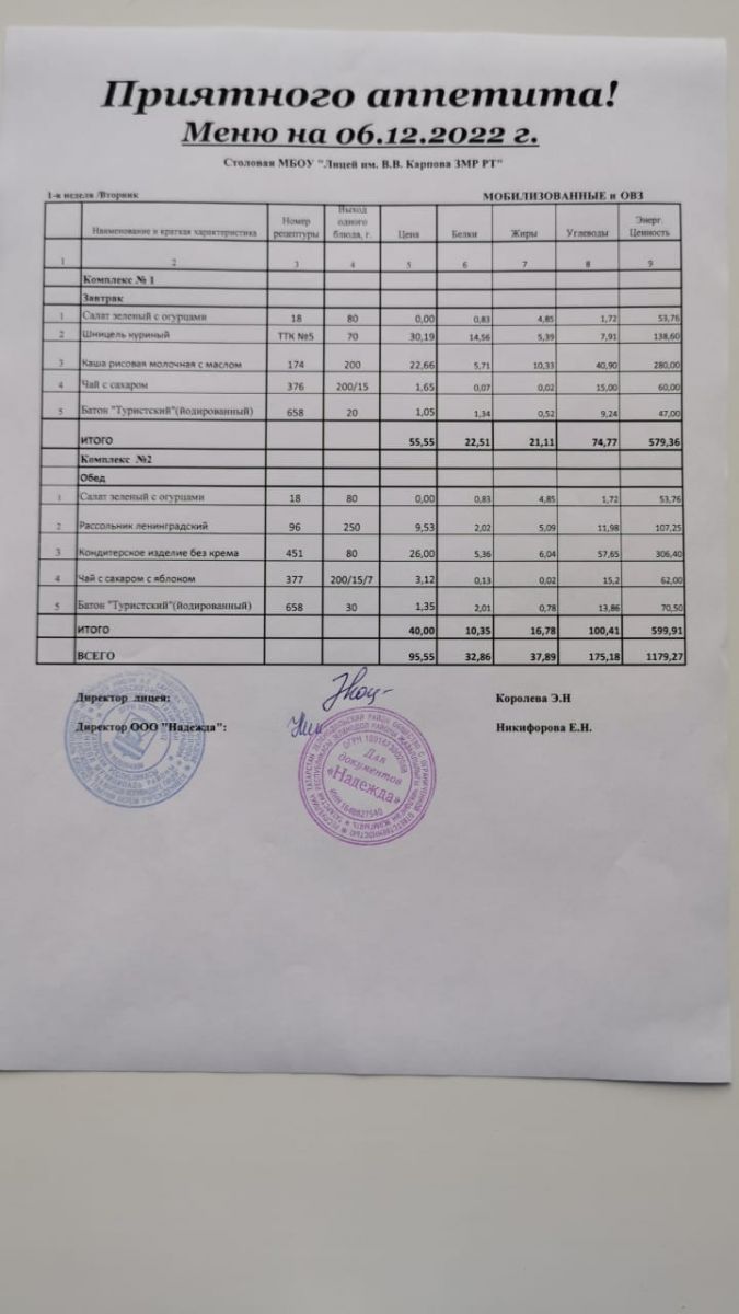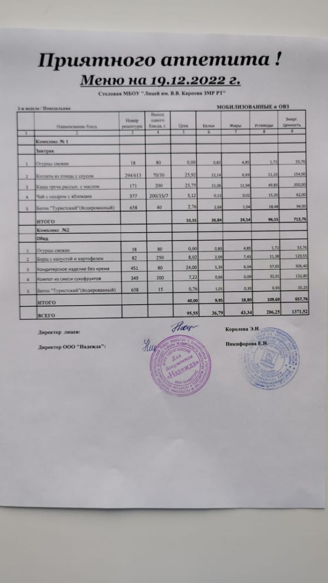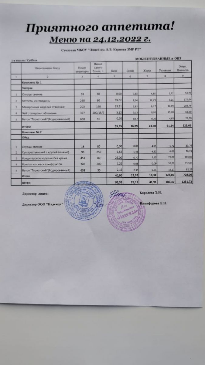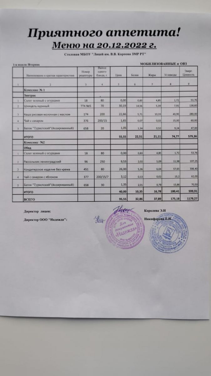 меню для учащихся с ОВЗ и мобилизованных декабрь |