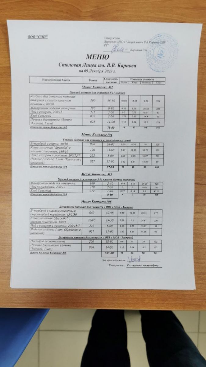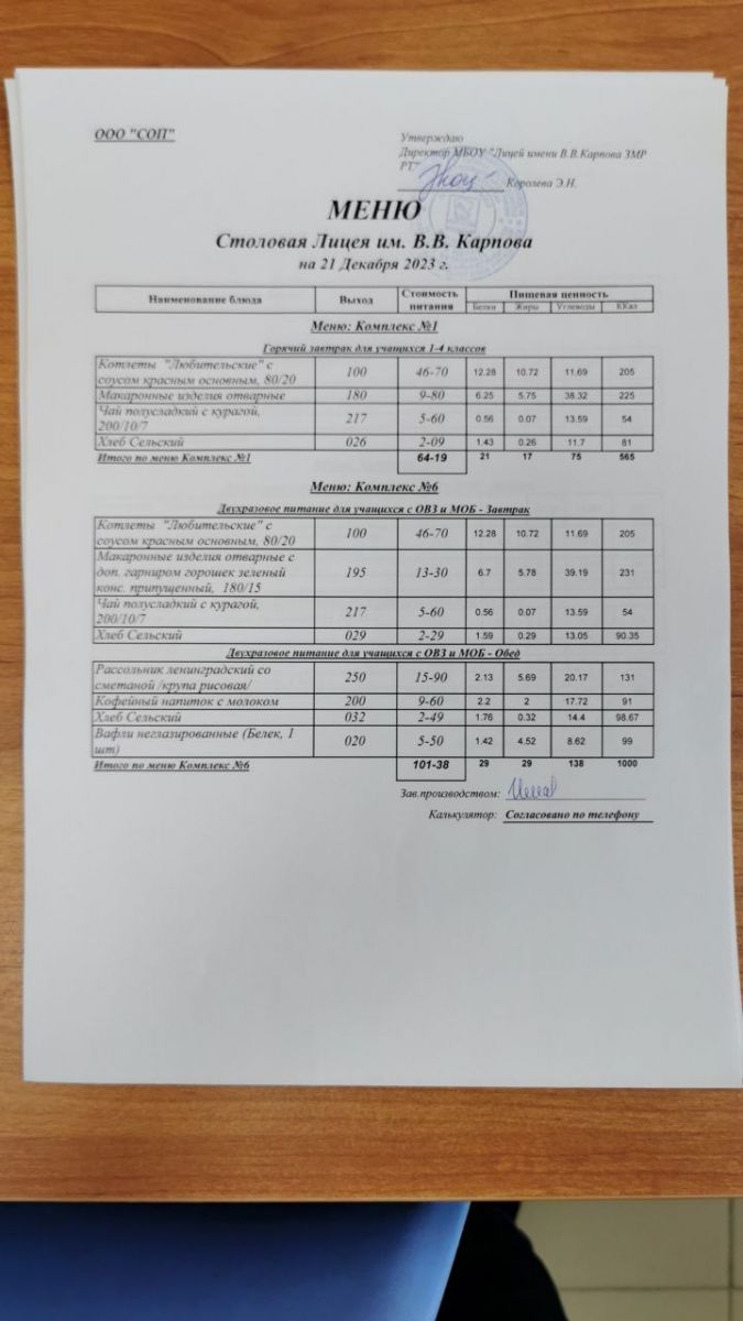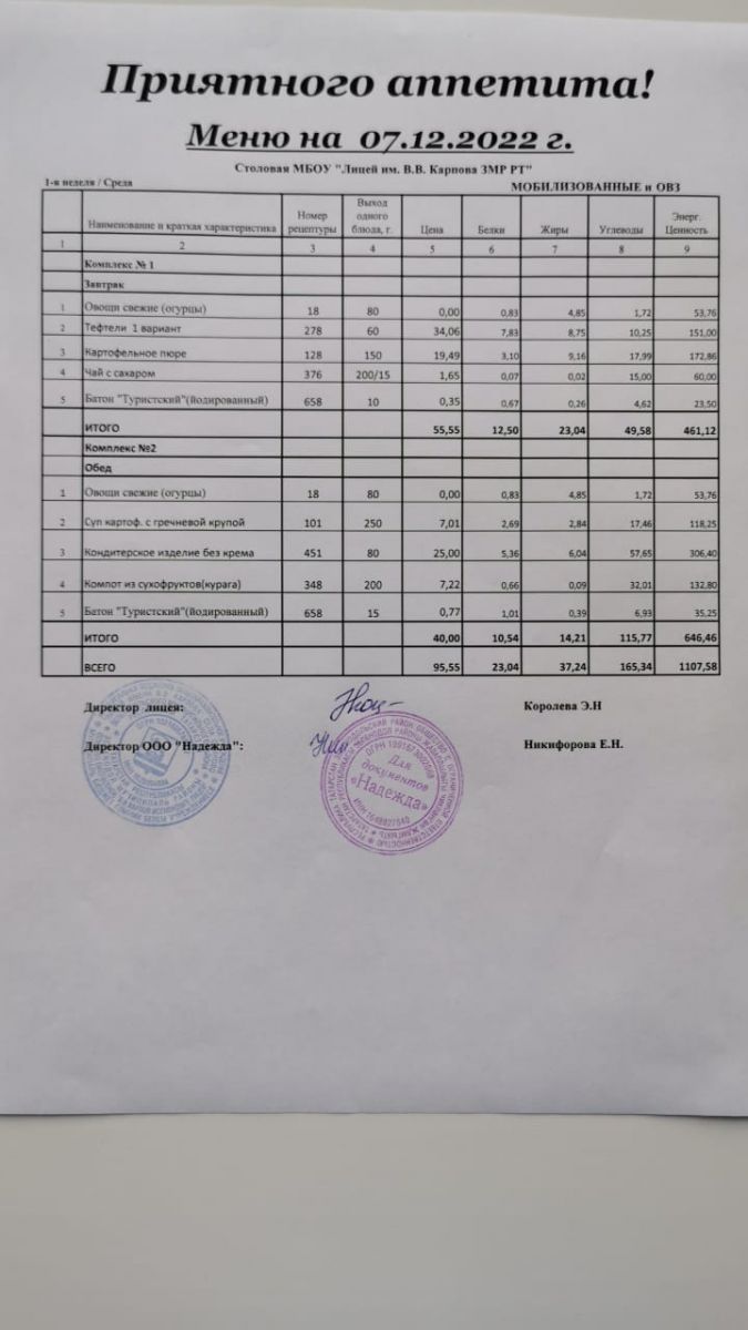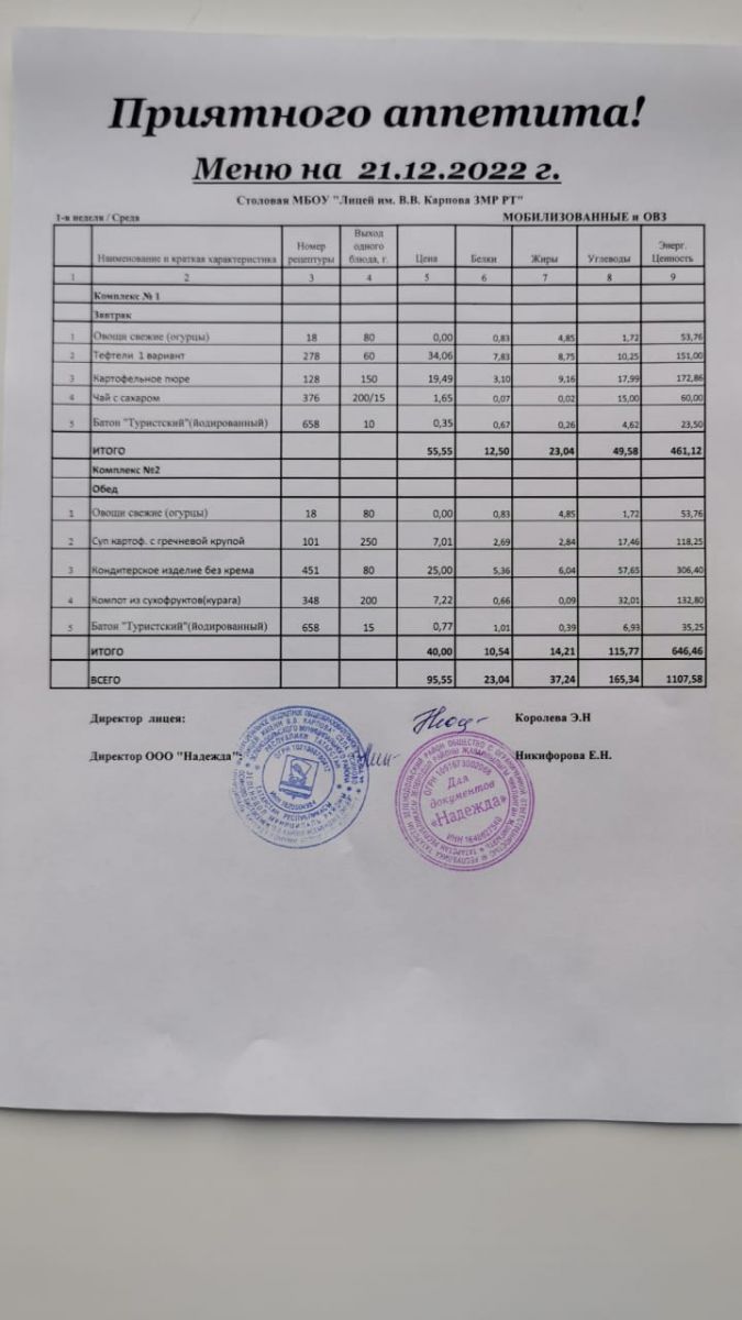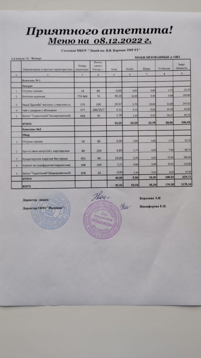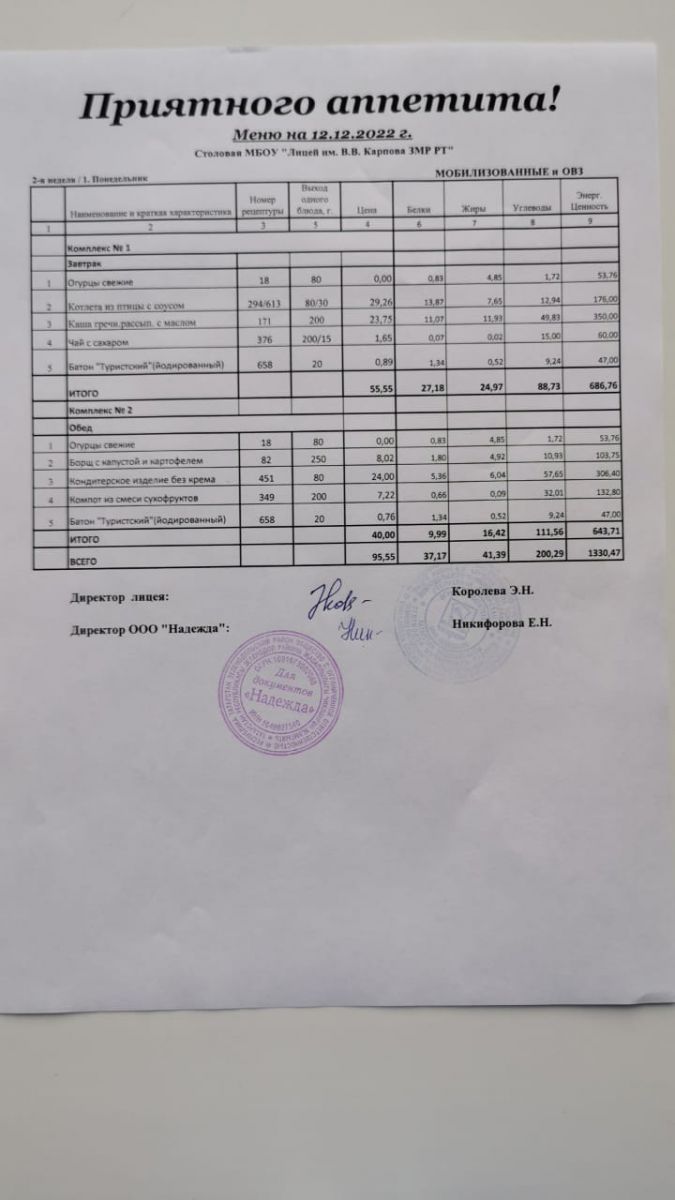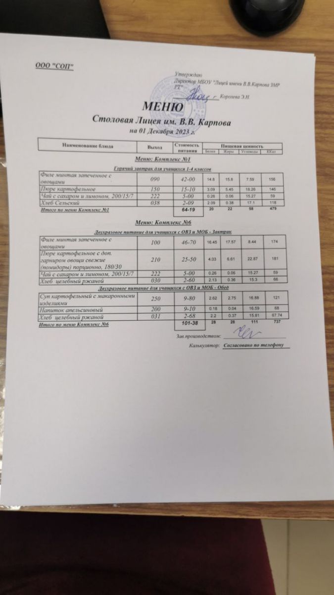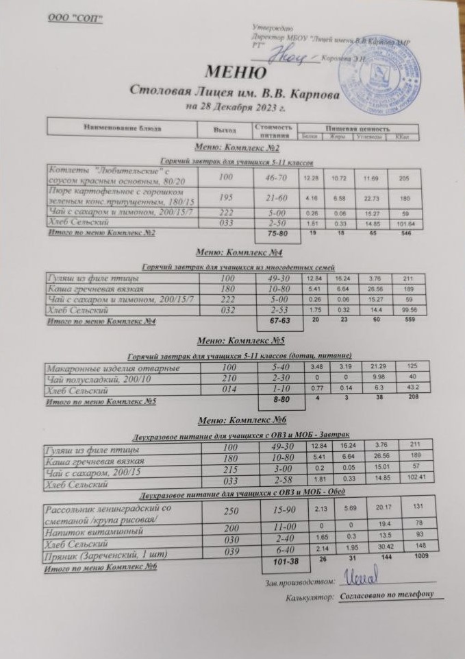 меню для учащихся с ОВЗ и мобилизованных декабрь |