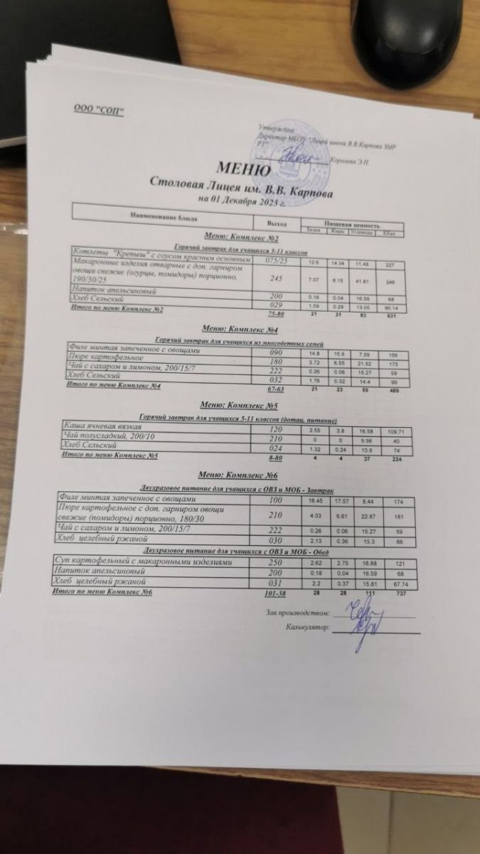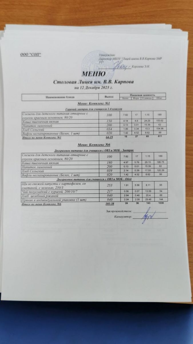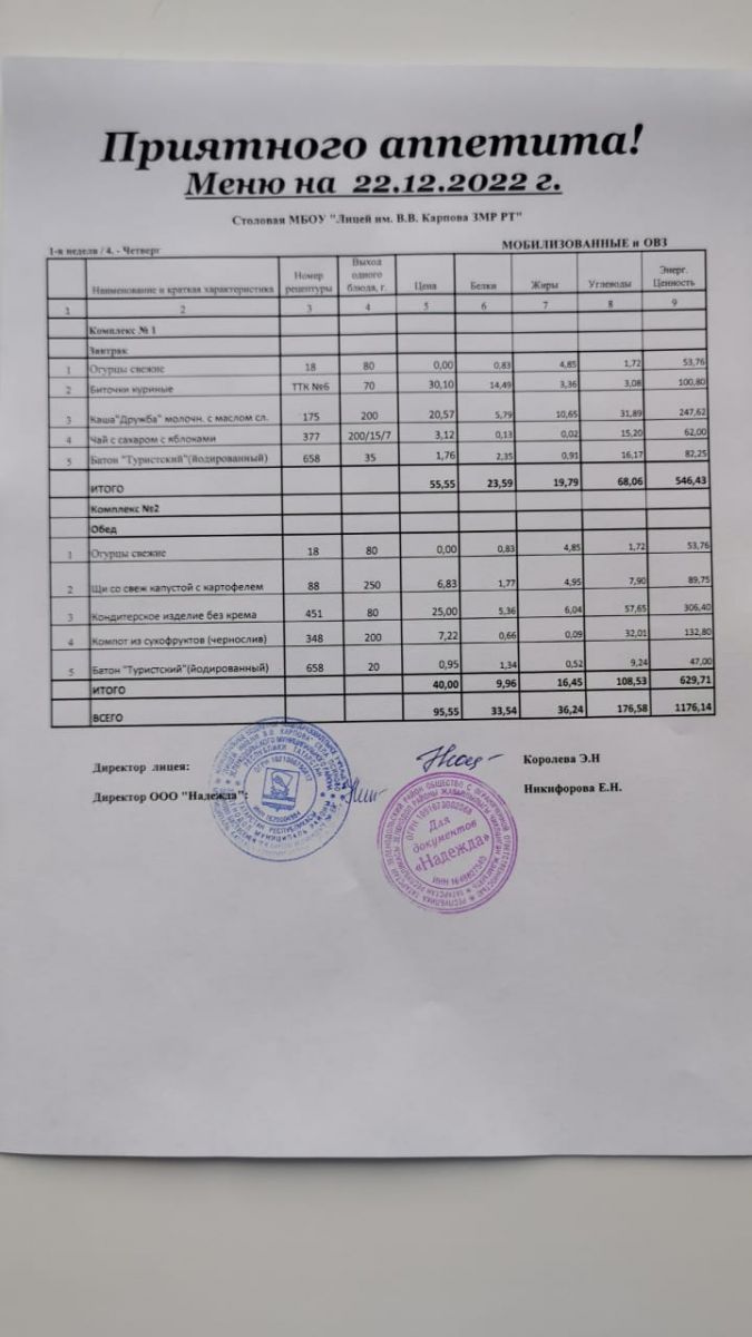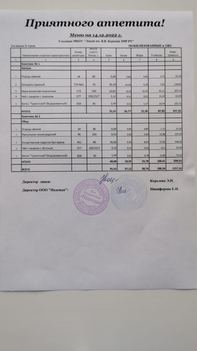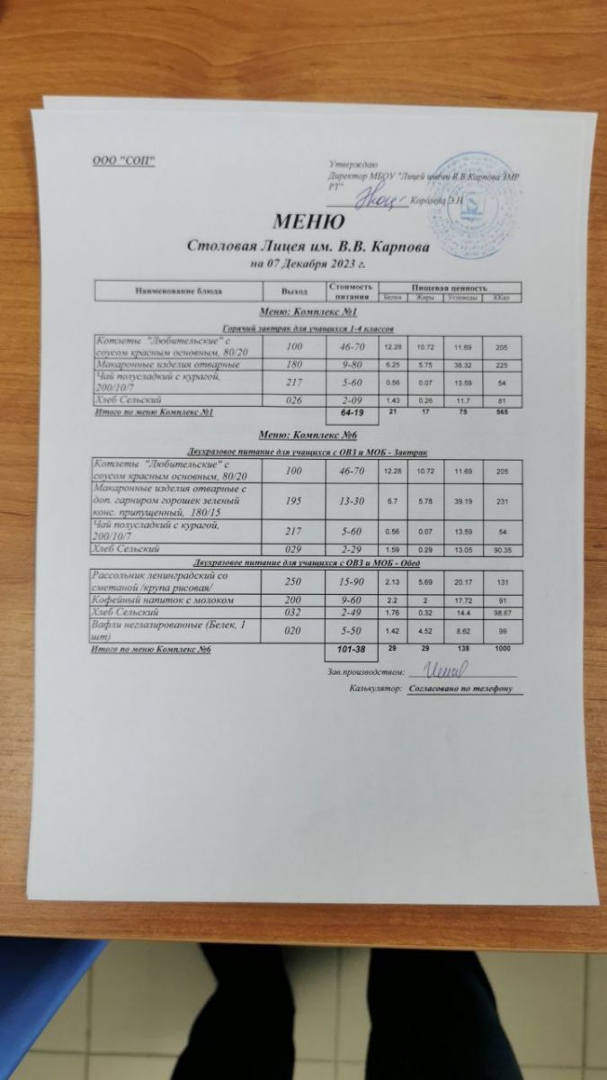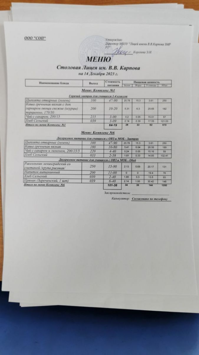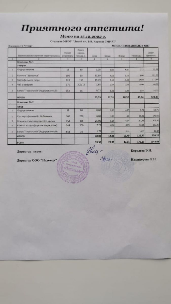 меню для учащихся с ОВЗ и мобилизованных декабрь |