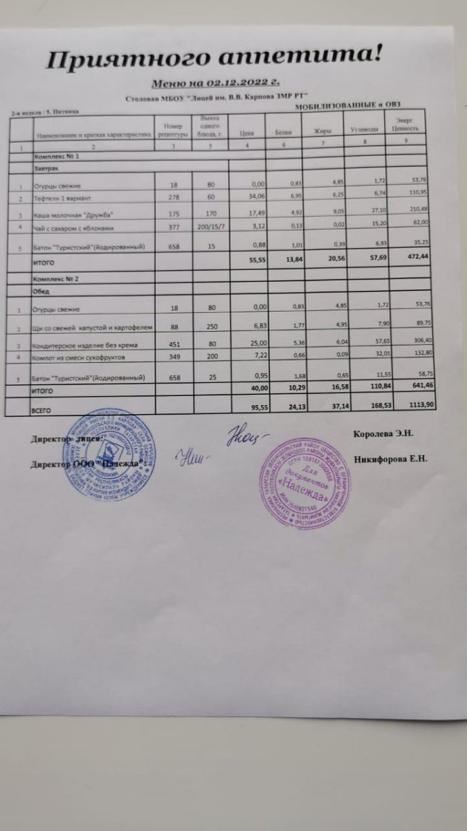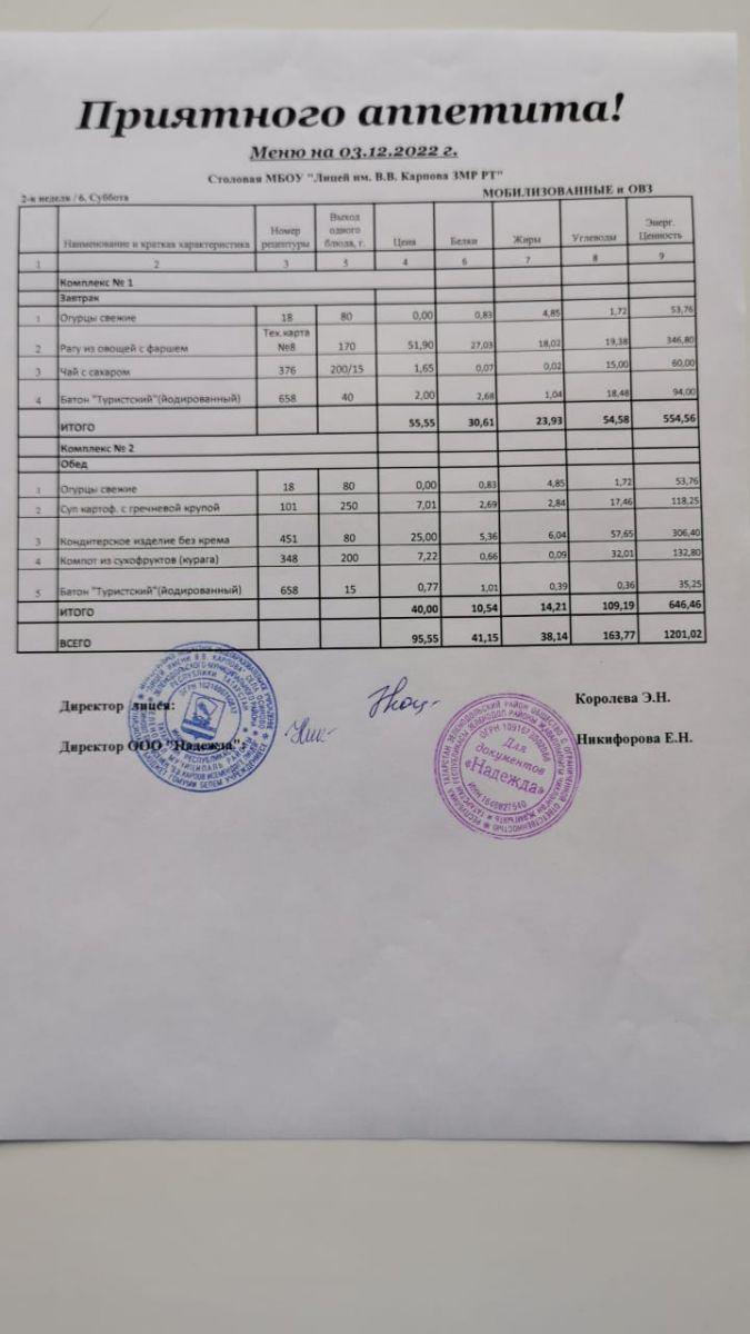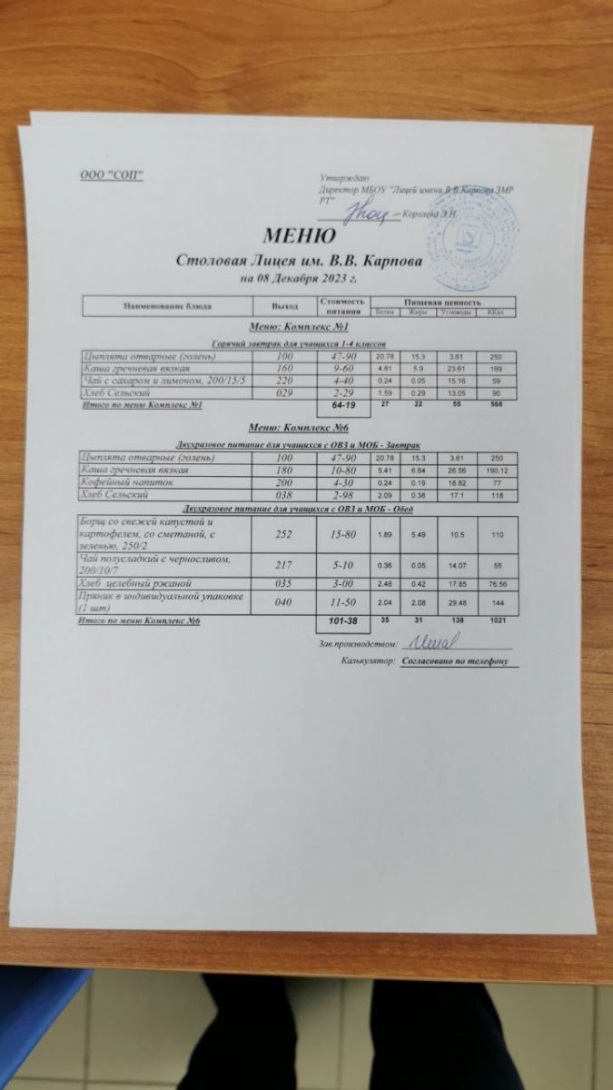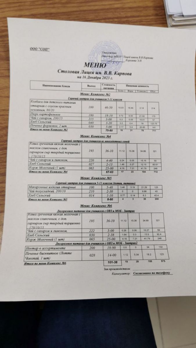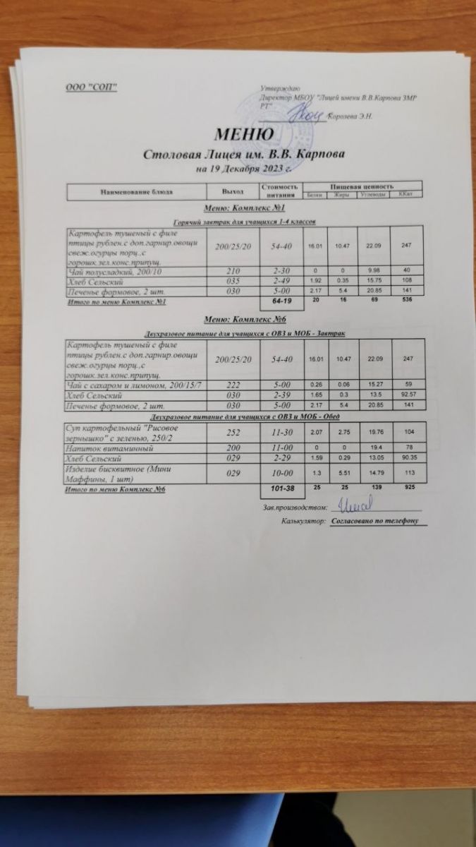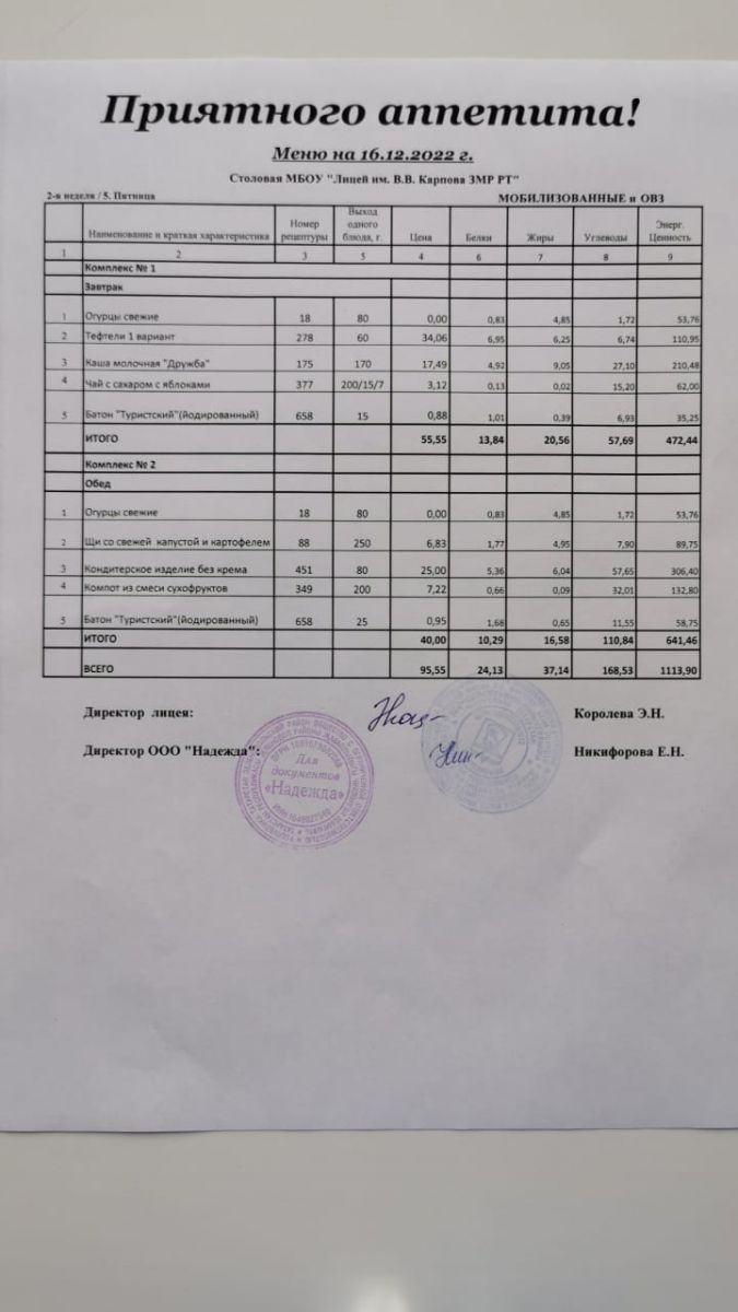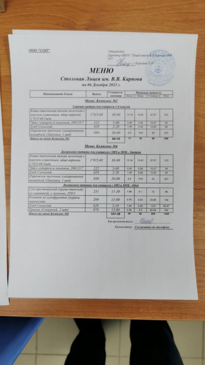 меню для учащихся с ОВЗ и мобилизованных декабрь |
