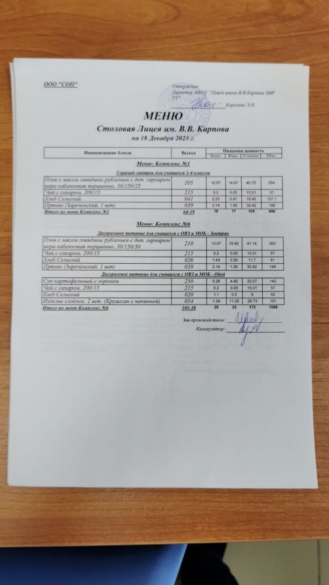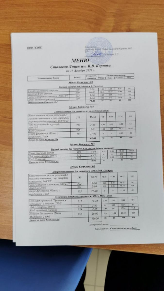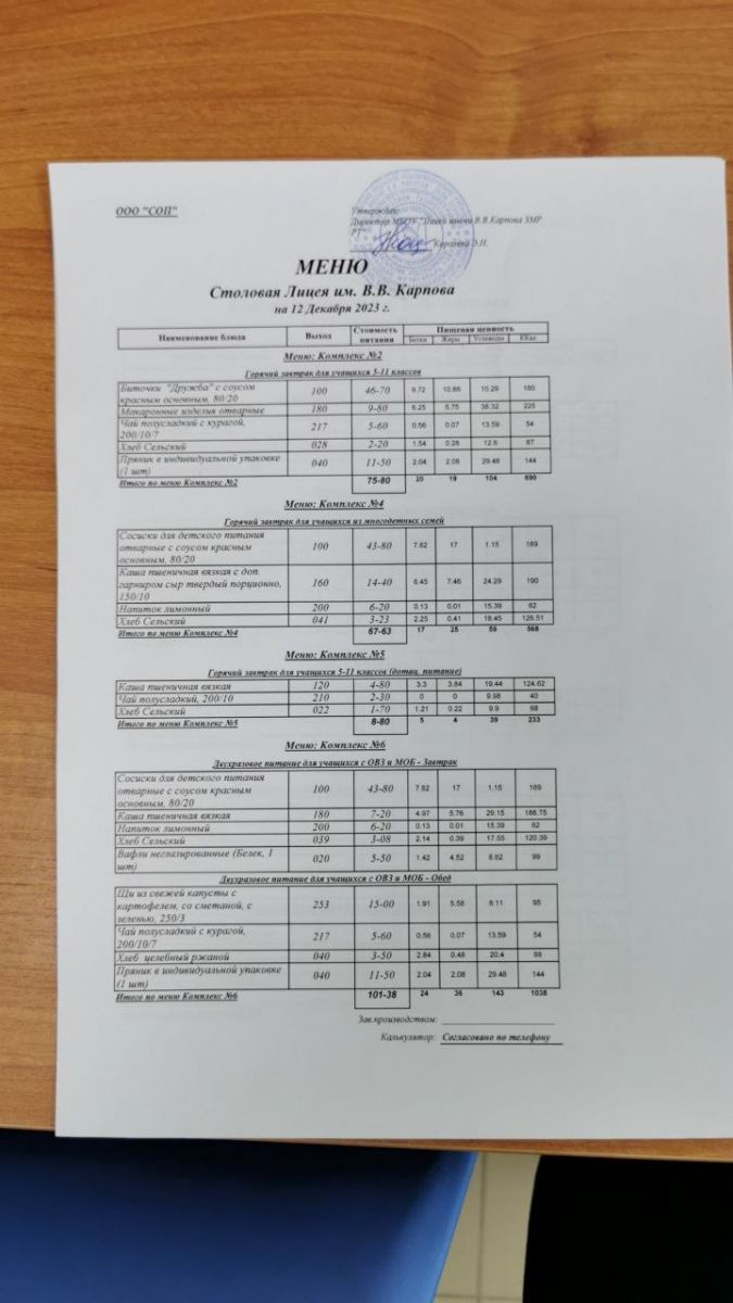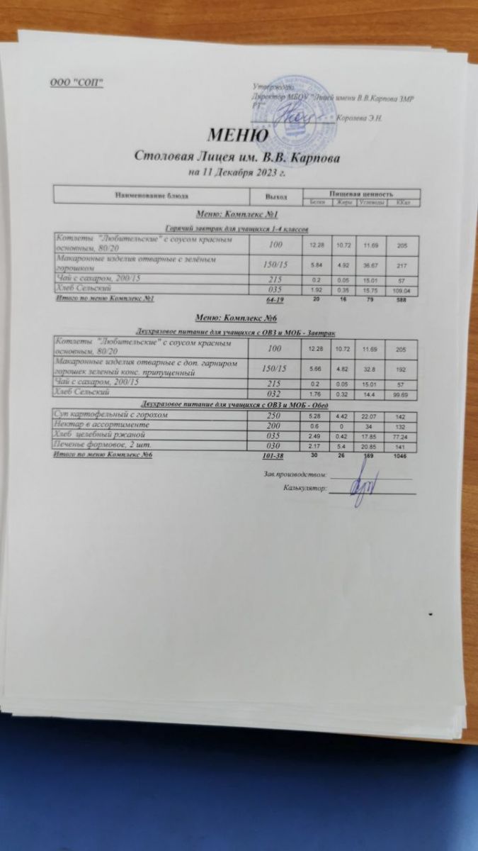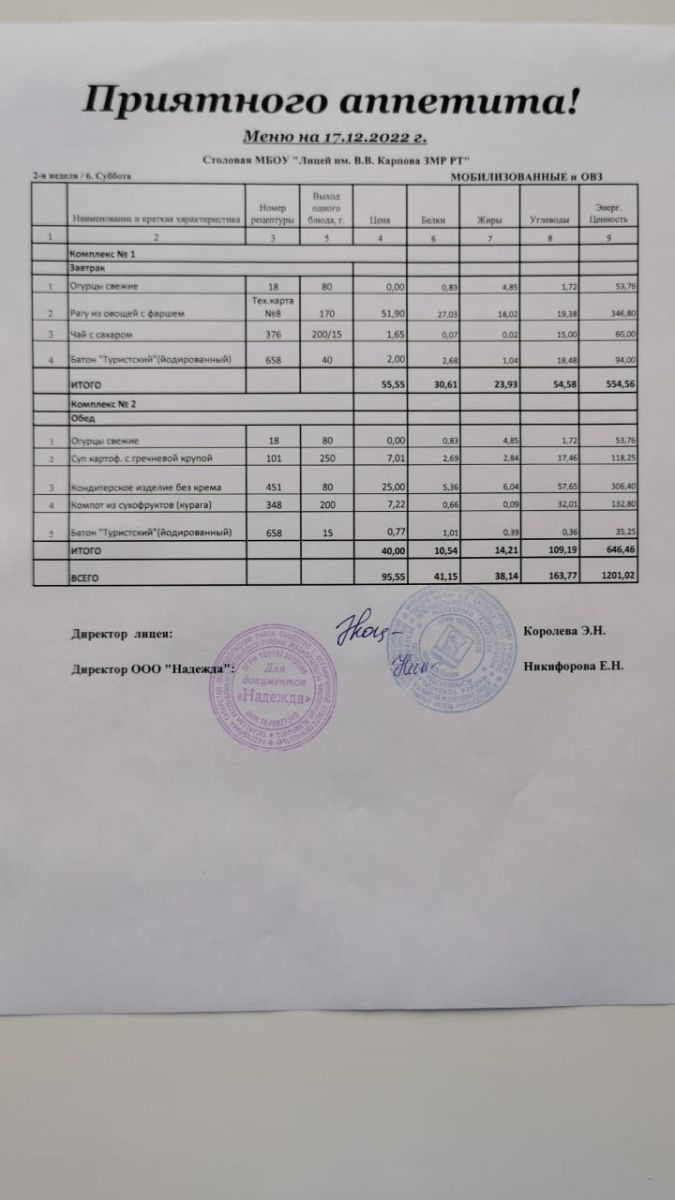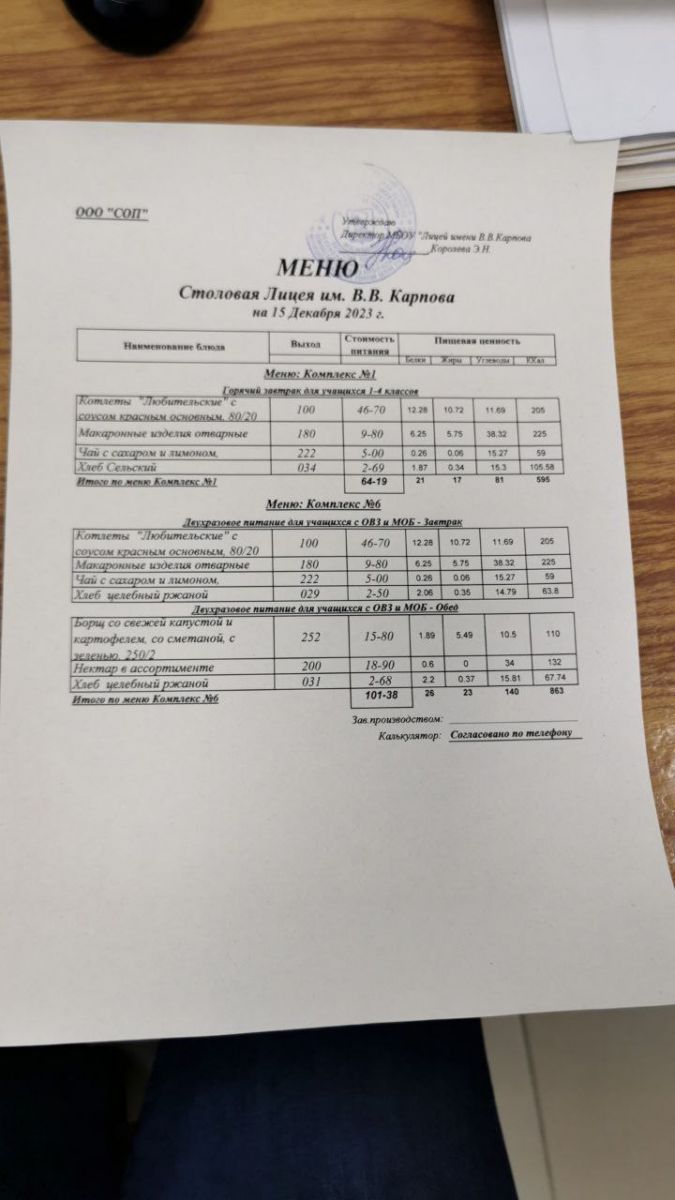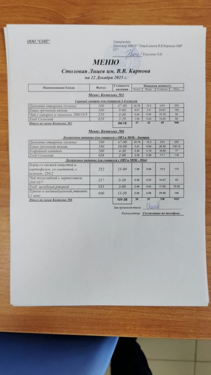 меню для учащихся с ОВЗ и мобилизованных декабрь |