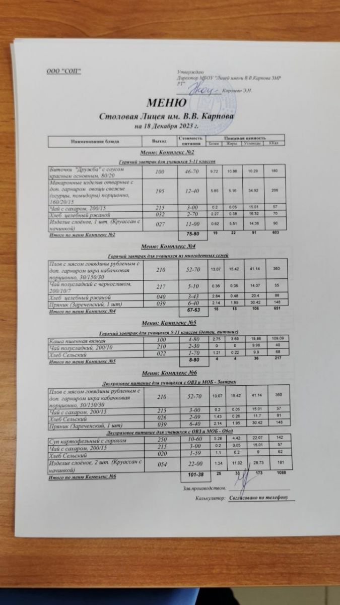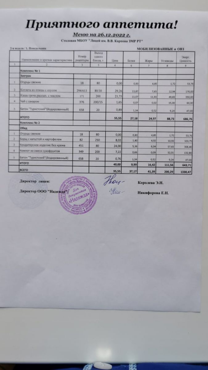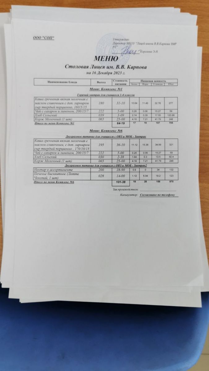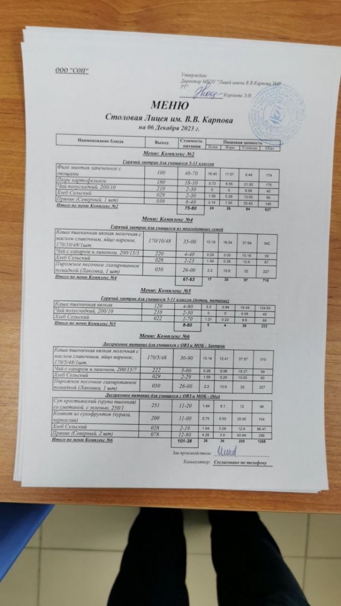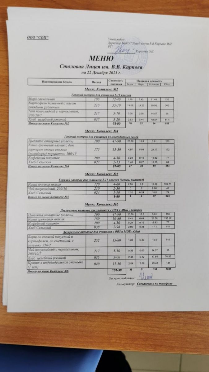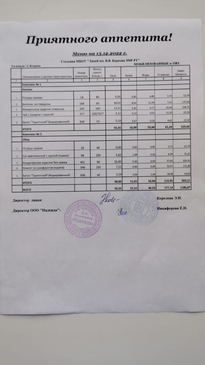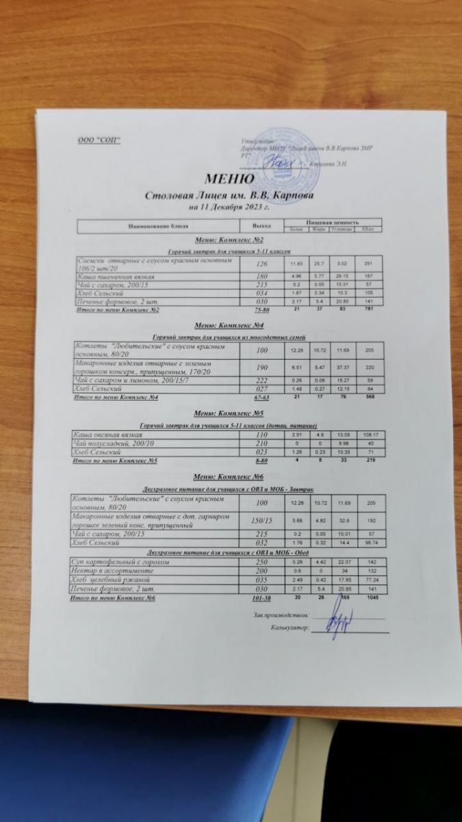 меню для учащихся с ОВЗ и мобилизованных декабрь |