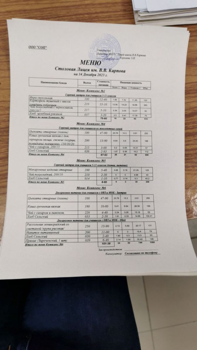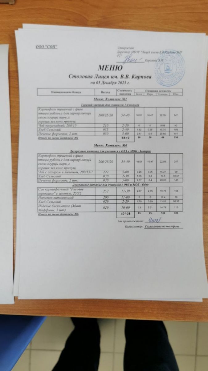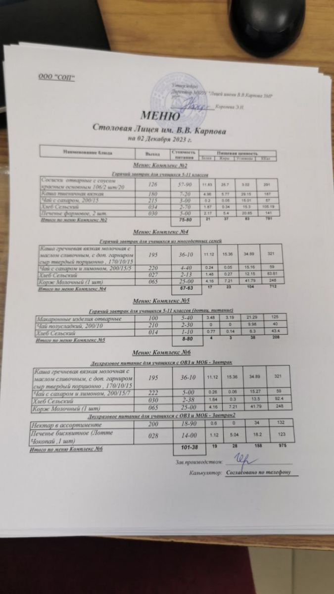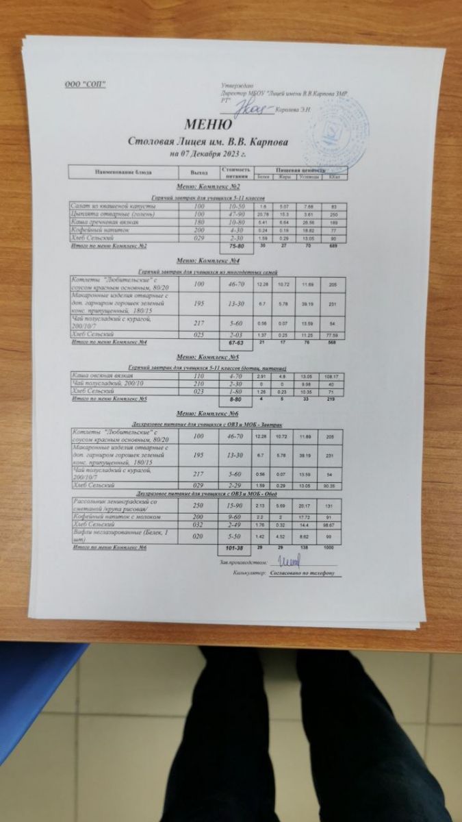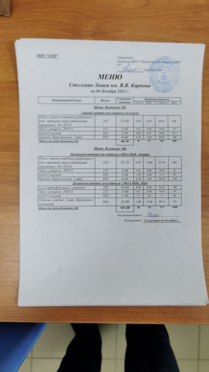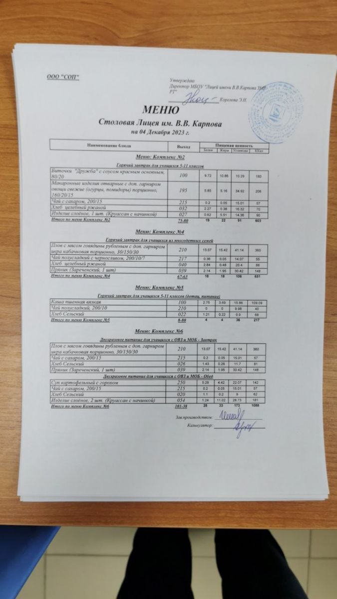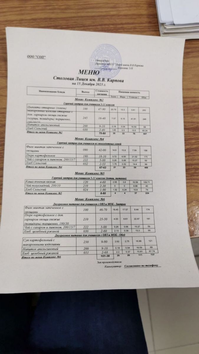 меню для учащихся с ОВЗ и мобилизованных декабрь |