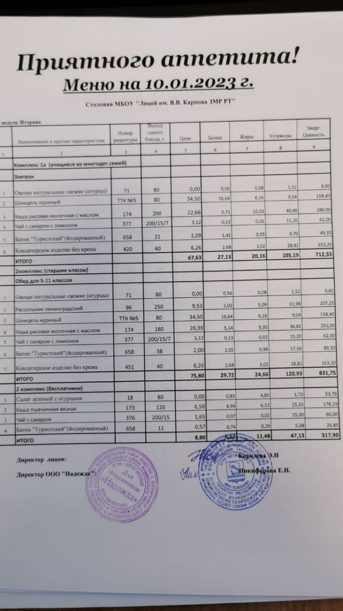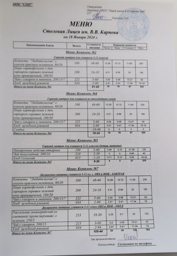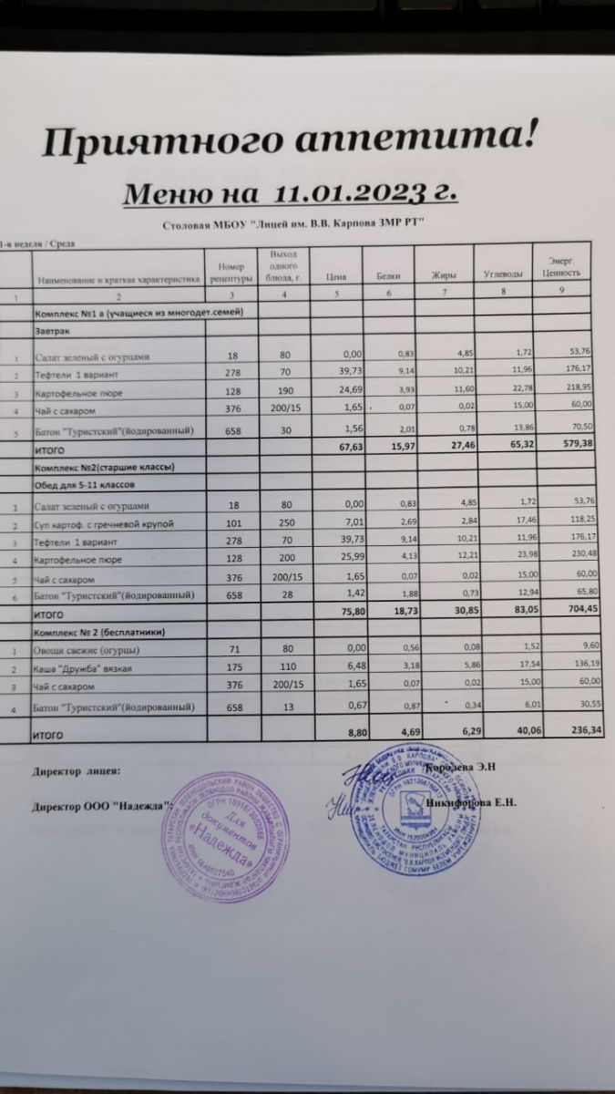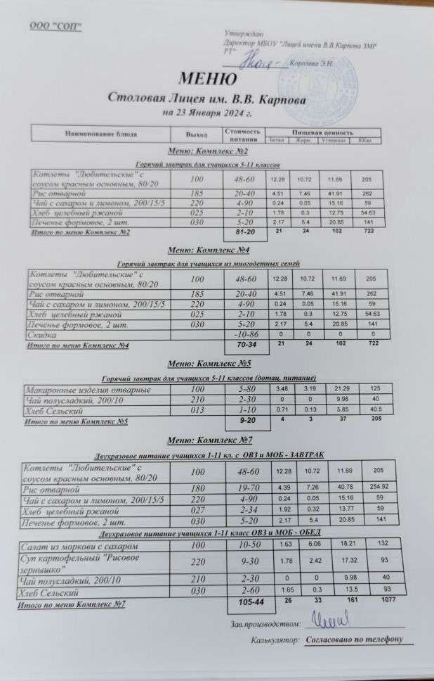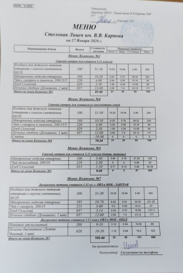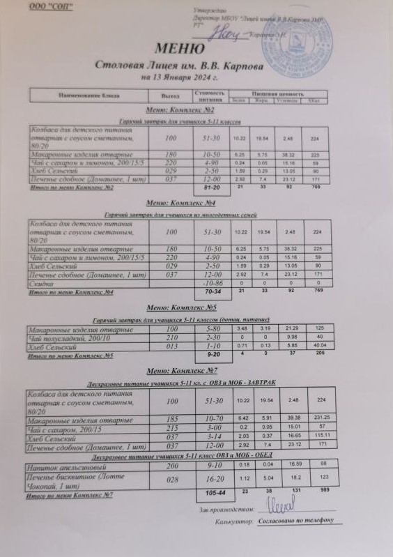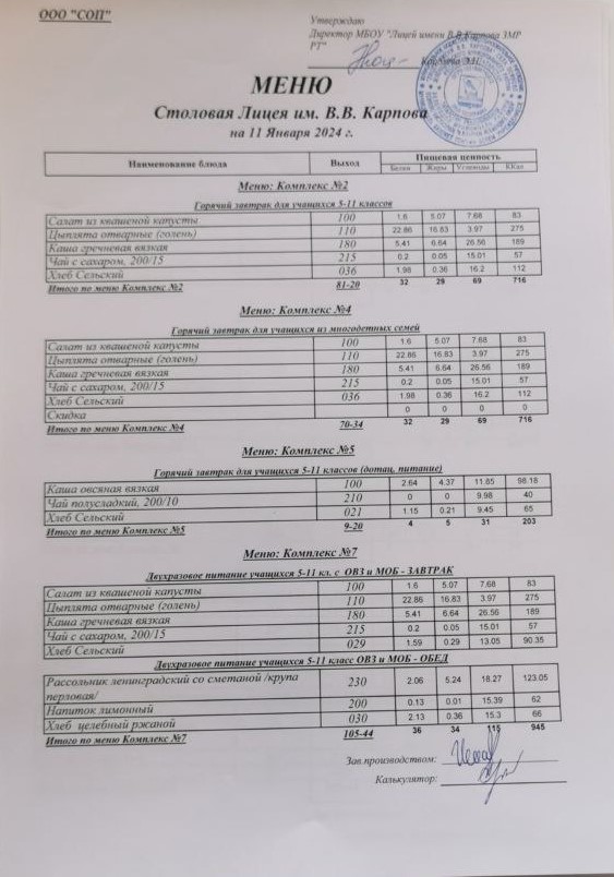 меню для учащихся 5-11 классов, меогодетных, бесплатников январь |
