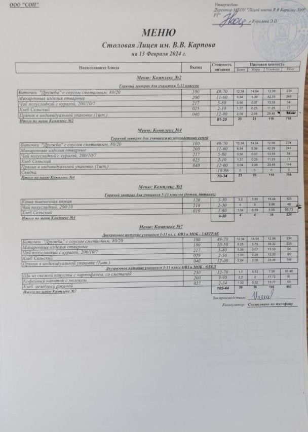 Меню для учащихся средних и старших классов февраль 2024-02-26 2024-02-27 2024-02-28 2024-02-29 |