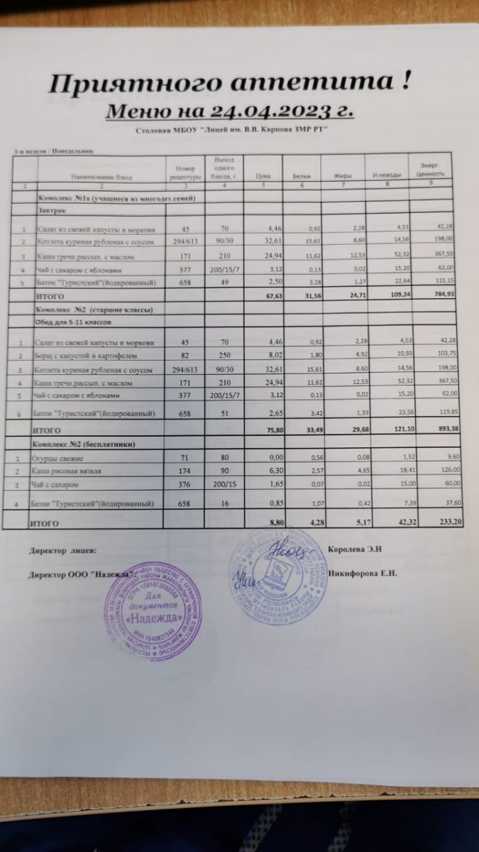 Меню для учащихся средних и старших классов апрель 2024-04-08 2024-04-09 |