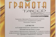 10 нчы 11 нче сыйныф укучылары һәм студентлар арасында И.С.Тургенев иҗатына багышланган төбәкара “Тел һәм сүз остасы” дип исемләнгән Тургенев укуларында 10 нчы сыйныф укучылары Большакова К. һәм `Рыбакова М. “Укучылар арасында иң яхшы сүз остасы” бәйгесендә 2 нче урыннарны яуладылар.Котлыйбыз!Афәрин!