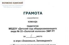 | Короткое название: | МБДОУ "Детский сад общеразвивающего вида № 23 "Золотой колосок" ЗМР РТ" |