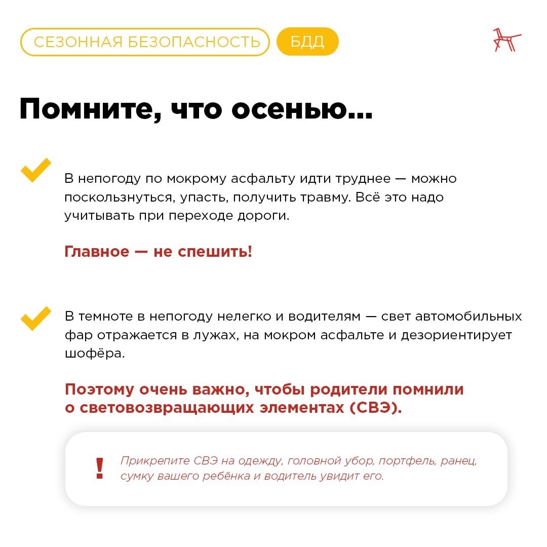Используйте световозвращающие элементы на одежде в тёмное время суток!