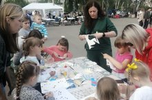 1 июня в парке"Молодежный" на празднике "День защиты детей" педагог ЦВР Эльмира Рашидовна Зинатуллина провела мастер-класс по изготовлению разноцветных ладошек.