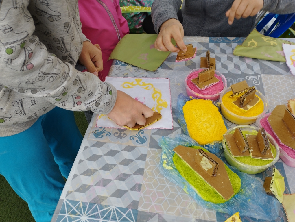 Дети вместе с родителями увлеченно обводили ладошки и раскрашивали яркими красками.
