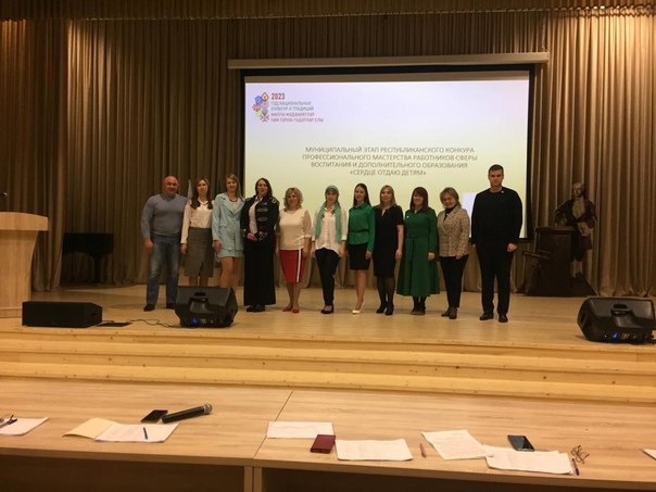 9 февраля 2023 года состоялся муниципальный этап конкурса профессионального мастерства работников сферы воспитания и дополнительного образования "Сердце отдаю детям". ЦВР представили на конкурсе в номинациях "Педагог дополнительного образования физкультурно-спортивной направленности" - Шамиль Шайхутдинович Гатавллин, "Педагог дополнительного образования художественной направленности" - Эльмира Рашидовна Зинатуллина, "Педагог дополнительного образования социально-гуманитарной направленности" - Борисюк Екатерина Юрьевна. /upload/storage/org986/files/Общее фото участников.jpg /upload/storage/org986/files/БорисюкЕЮ.jpg /upload/storage/org986/files/ГатавллинШШ.jpg /upload/storage/org986/files/ЗинатуллинаЭР.jpg