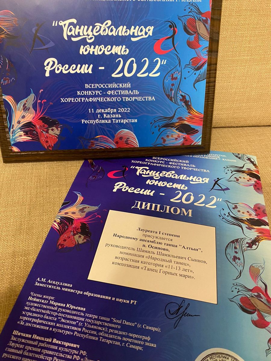 3 декабря 2022 года в Казани в театре кукол «Экият» прошёл Международный хореографический фестиваль конкурс «Сияй», в котором приняла участие младшая группа объединения "Алтын". Ребята представили на суд жюри русский танец и стали дипломантами I Степени!!!