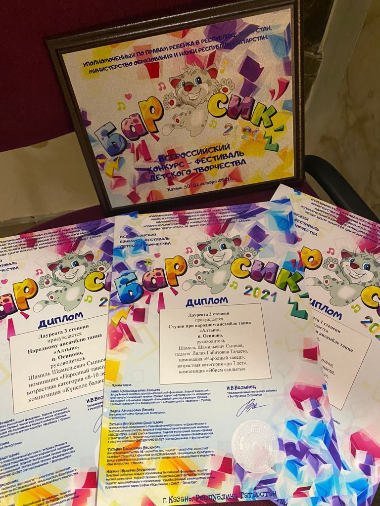 30-31 октября 2021 года хореографическое объединение «Алтын» приняло участие во Всероссийском конкурсе – фестивале детского творчества «Барсик», организованном Уполномоченным по правам ребенка в Республике Татарстан и Министерством образования и науки Республики Татарстан. Коллективы объединения «Алтын» как всегда выступили ярко и зажигательно!По итогам конкурса объединение «Алтын» стали: