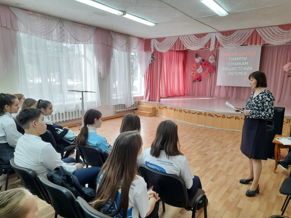 Волонтеры Победы объединения "Я-доброволец! Я-волонтер!" для учащихся объединений "Краеведение" и "Отрядный вожатый" провели тематический урок "Надо помнить...", посвященный освобождению узников из концлагерей. Ссылка на фото Тематический урок .jpg