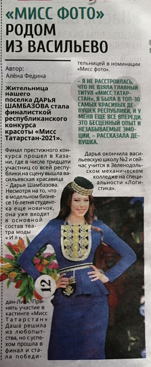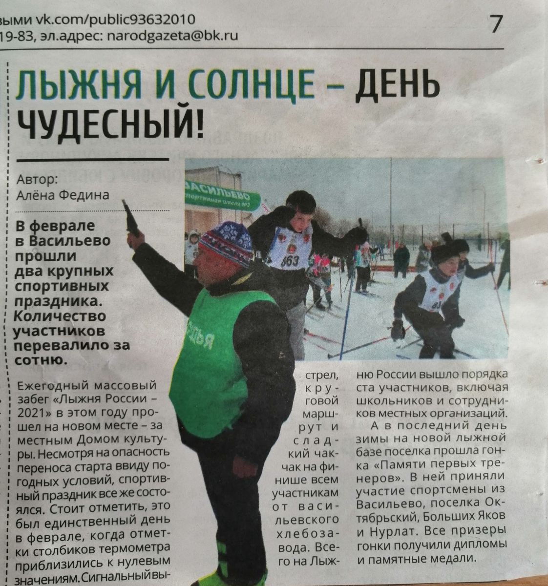 Так, в свежем выпуске "Народной газеты Васильево" вышло сразу два материала Алёны Фединой, на темы культуры и спорта.