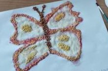 Первое занятие - это изготовление аппликации Бабочки из разных круп. Просмотрев видео с участием педагога, получив необходимые краткие разъяснения, учащиеся изготовили своих Бабочек. По отзывам родителей все было понятно и доступно.