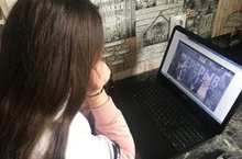 Занятия по электронному обучению идут в театральном объединении "ТеАрт". Коллаж представляет фрагменты практических работ учащихся по теме «Эмоции».