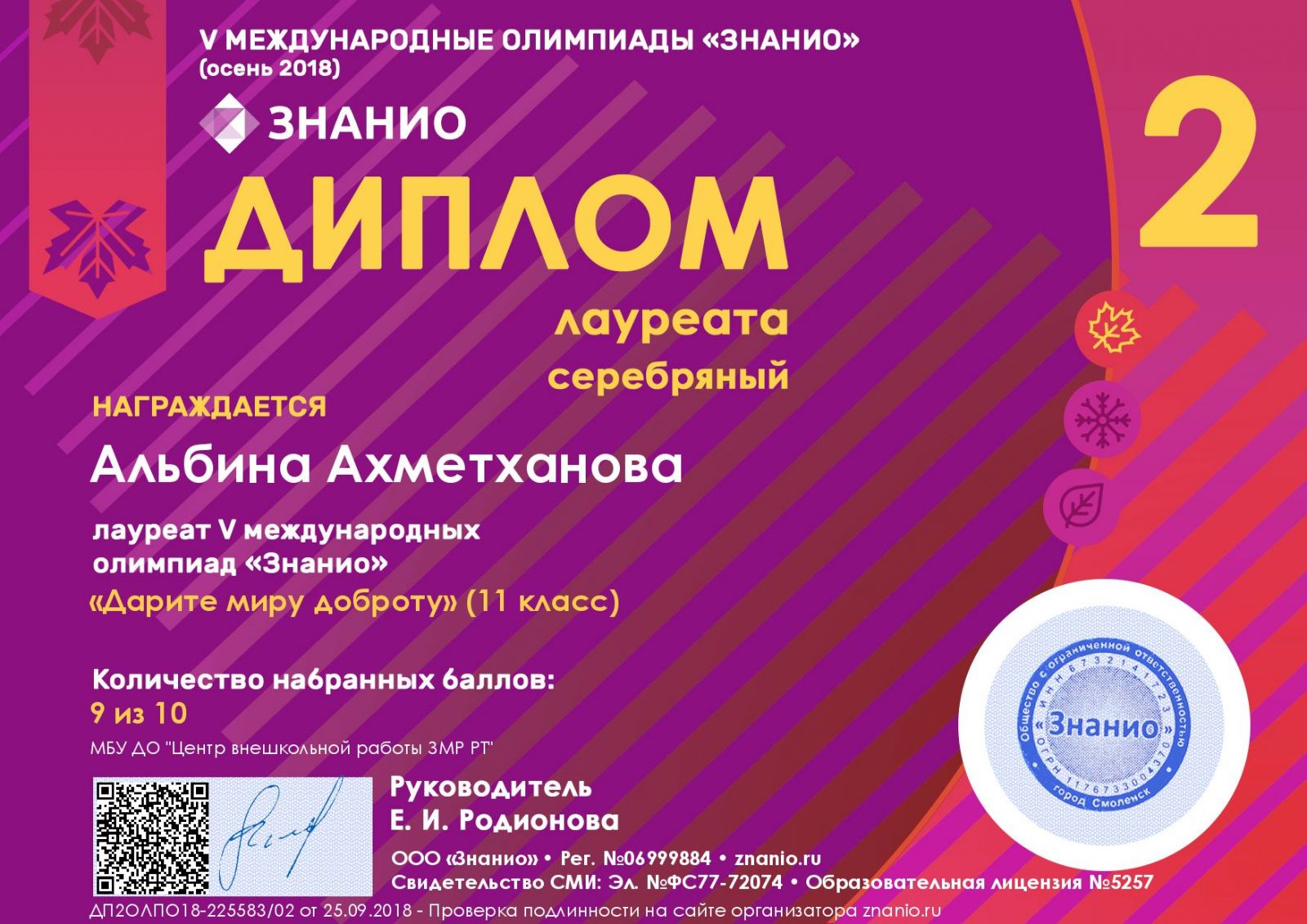 | Руководитель: | Ахметгараева Алина Альфировна |