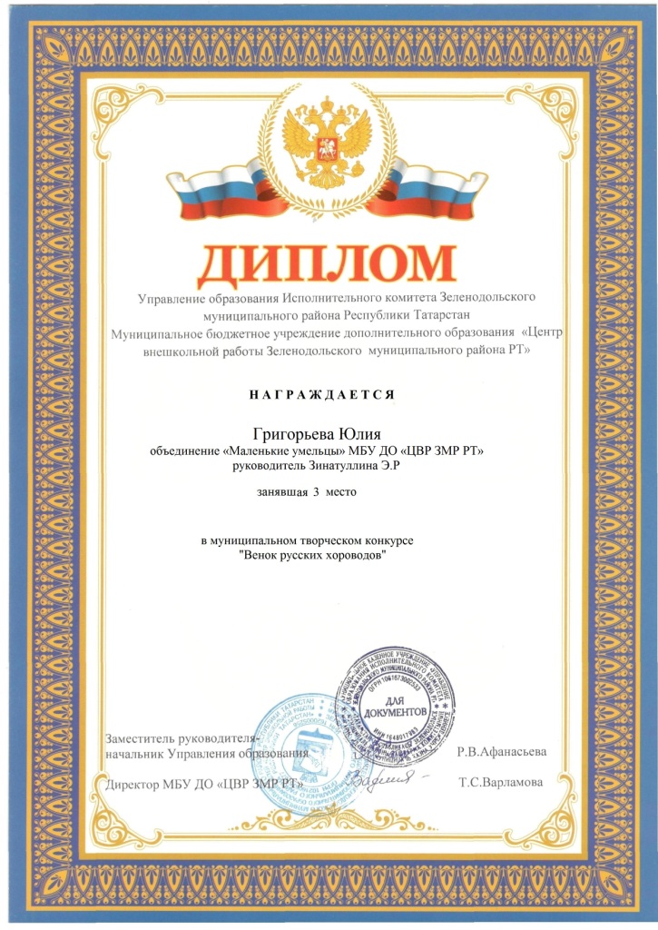 | Короткое название: | МБУ ДО "ЦВР ЗМР РТ" |