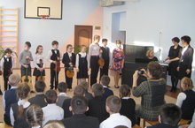 Преподаватели и воспитанник Детской музыкальной школы нашего города Зеленодольска организовали выездной концерт для учащихся нашей школы.