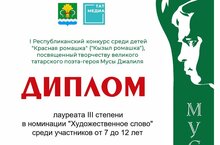 Ко Дню Рождения поэта-героя Мусы Джалиля, наши дошкольники участвовали в 1 Республиканском конкурсе "Красная ромашка", посвященному творчеству великого татарского поэта. Поздравляем Победителей в номинации "Художественное слово"
