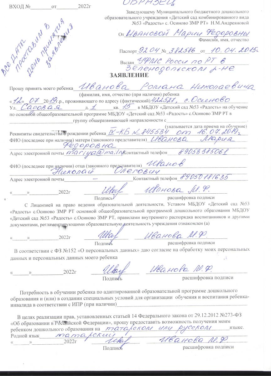 Муниципальное бюджетное дошкольное образовательное учреждение «Детский сад комбинированного вида №53 «Радость» с. Осиново Зеленодольского муниципального района РТ