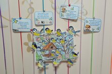 Синичкин день 12 ноября по народному календарю отмечается Зиновий Синичник, который ранее на Руси считался праздником охотников и рыбаков. По народным приметам, именно к этому времени синицы, предчувствуя скорые холода, перелетали из лесов ближе к человеческому жилью и ждали помощи от людей. В преддверии этого дня воспитанники группы №14 совместно с воспитателем Белоусовой Э.М. создали композицию из бумаги «Желтогрудые соседи». Ребята постарались и сконструировали из цветной бумаги замечательных синиц.