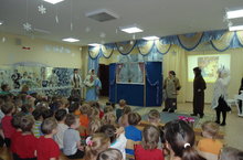 Вот и закончились Новогодние праздники, а музыкальные руководители детского сада организовали развлечение для детей "Прошание с елочкой". Воспитанники вспомнили новогодние номера: танцы, песни, стихи и сценки, и с большим удовольствием продемонстировали их для своих друзей.