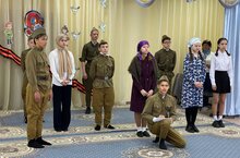 11 май көнне, Җиңү көне кысаларында, бакча тәрбияләнүчеләре алдында 16 нчы урта гомуми белем бирү мәктәбе укучылары чыгыш ясадылар. 8«А» сыйныф укучылары Мөхетдинов Раил җитәкчелегендәге «Театраль сәхнә» театр студиясендә шөгыльләнәләр. Балалар татар телендә музыкаль-әдәби композиция тәкъдим иттеләр. Анда сугыш елларының татар һәм рус телләрендәге җырлары, Бөек Ватан сугышының авыр еллары турында аерым күренешләр һәм, әлбәттә, "Җиңү көне" җыры яңгырады. Балалар бакчасында тәрбияләнүчеләр яшь артистларның чыгышын аңладылар һәм аларны басып алкышладылар.