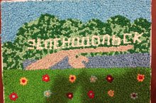 Приняли участие в в конкурсе "Зеленая весна-в Зеленодольске". Сделали вот такое панно из салфеток