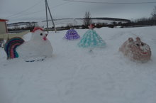 Благодаря родителям,территория нашего детского сада стала сказочно красивым!Дед мороз и снегурочка,символ года петух и герои из мультфильмов теперь украшают наш детский сад!