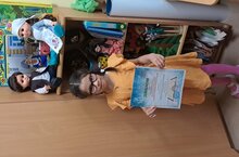 Погостинская аннаны, 6 нчы төркем тәрбияләнүчесен (Незабудки) котлыйбыз. Ул «Җиңү язы – 2023 " XI муниципаль иҗади укучылар конкурсында җиңүче грамотасы белән бүләкләнде. Аня Татьяна Лиховцовой «Мальчишка рисовал мечту» шигырен укый.