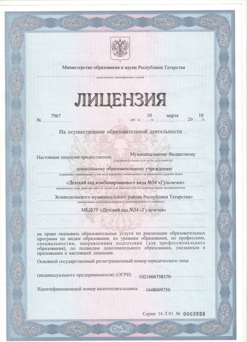 Короткое название: МБДОУ "Детский сад комбинированного вида № 34 "Гульчечек" ЗМР РТ