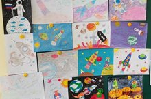 Знания, полученные в детском саду, дети закрепили в своих творческих работах. Рисунки выполнены с большой фантазией и представляли из себя яркий мир красок, звёзд, ночного неба нашей галактики.