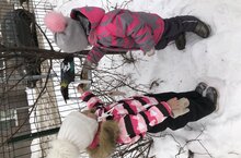 Во время прогулки, повесили кормушки, накрошили в нее хлебных крошек и насыпали зерна. Очень скоро птицы привыкнут к тому, что здесь постоянно есть для них корм, и начнут прилетать к нашим кормушкам. Мы думаем, что птицы будут рады угощению!
