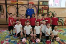 Мастер класс тренировки по футболу провел в старших группах детский тренер клуба Зенит кидс Ахмадуллин Адель Фанисович. Ребятам в игровой форме были даны рекомендации по тому, как нужно вести себя на тренировках. Проведена разминка, игры на внимание, умение видеть и ориентироваться на партнёра. Мастер класс заинтересовал мальчишек, вечером они с азартом делились впечатлениями с родителями.